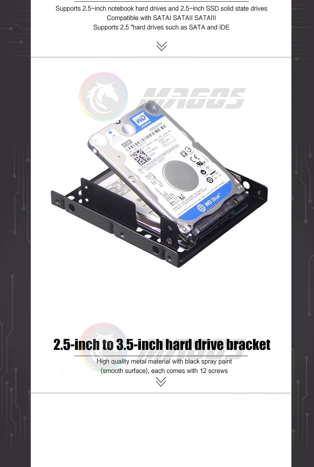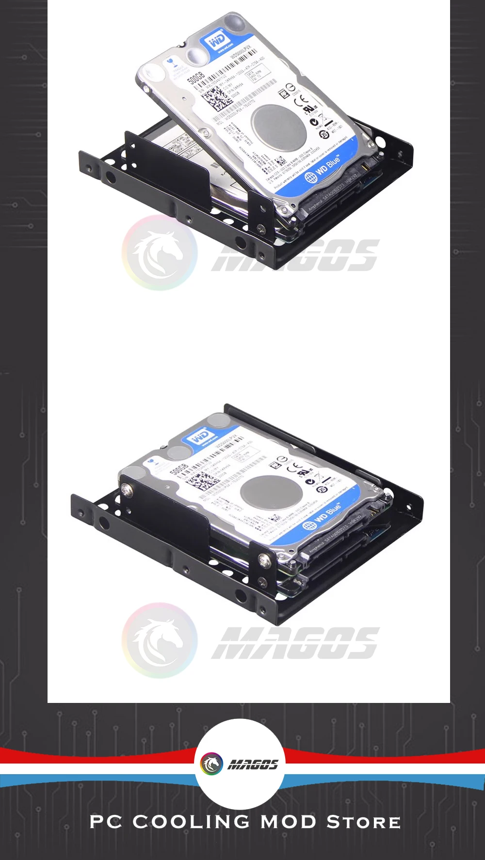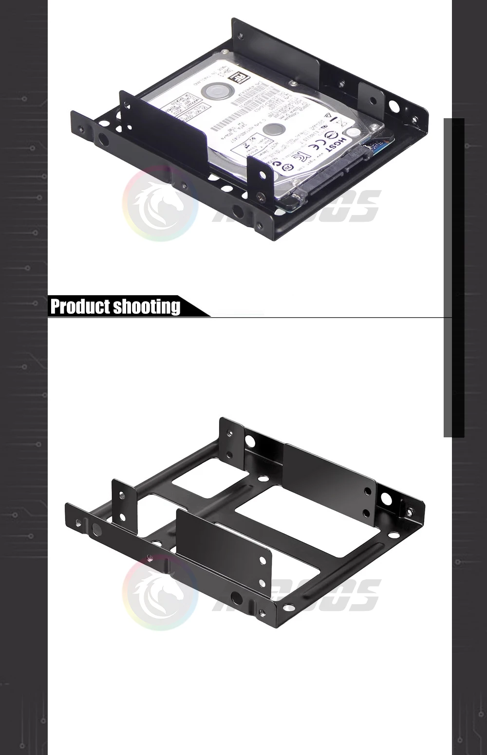 Soporte de transferencia SSD para computadora, 2 capas para 2 soportes convertidores de unidad de estado sólido de 2,5 pulgadas y 3,5 pulgadas, tipo engrosamiento