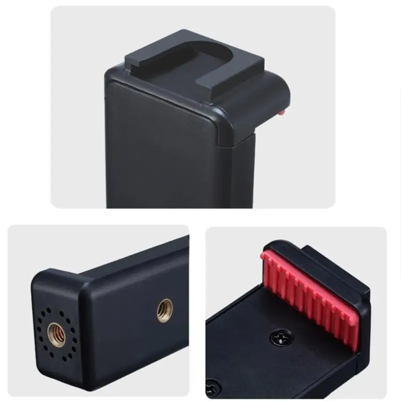Este soporte para teléfono inteligente viene con un soporte de zapata fría en la parte superior, lo que le permite agregar fácilmente accesorios como luces LED o micrófonos, mejorando la funcionalidad de su teléfono.