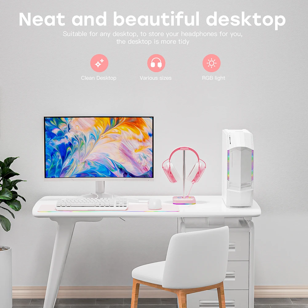 Comprar Soporte Universal de aleación de aluminio para auriculares, tira de luz de retroiluminación RGB, soporte para auriculares para juegos, accesorios para auriculares