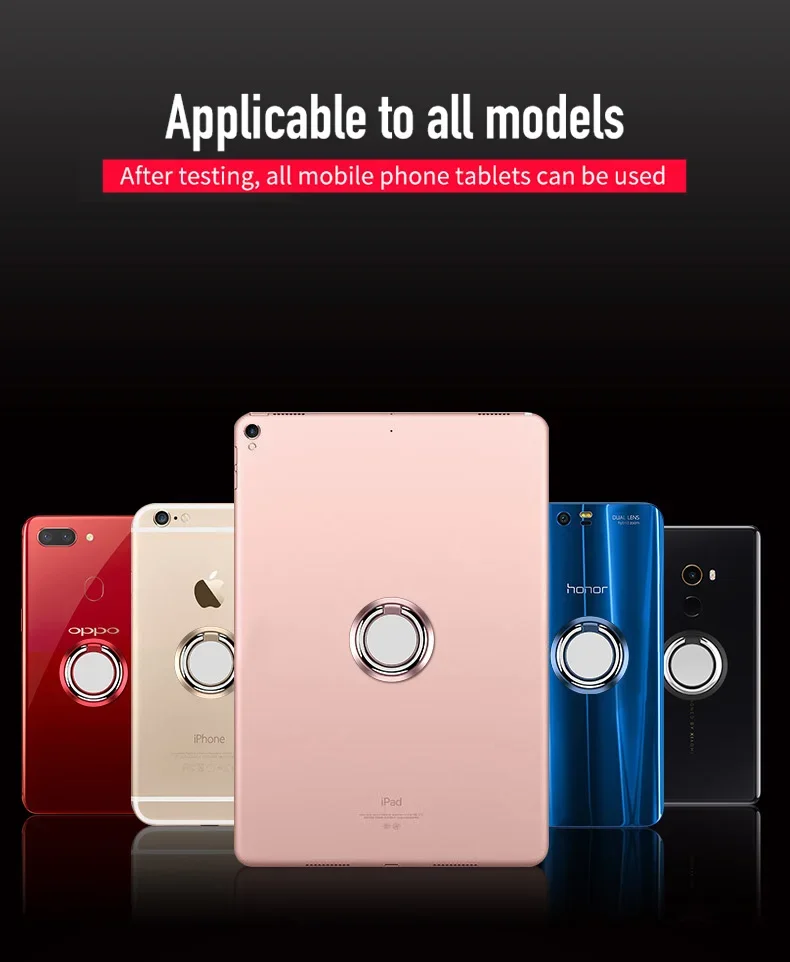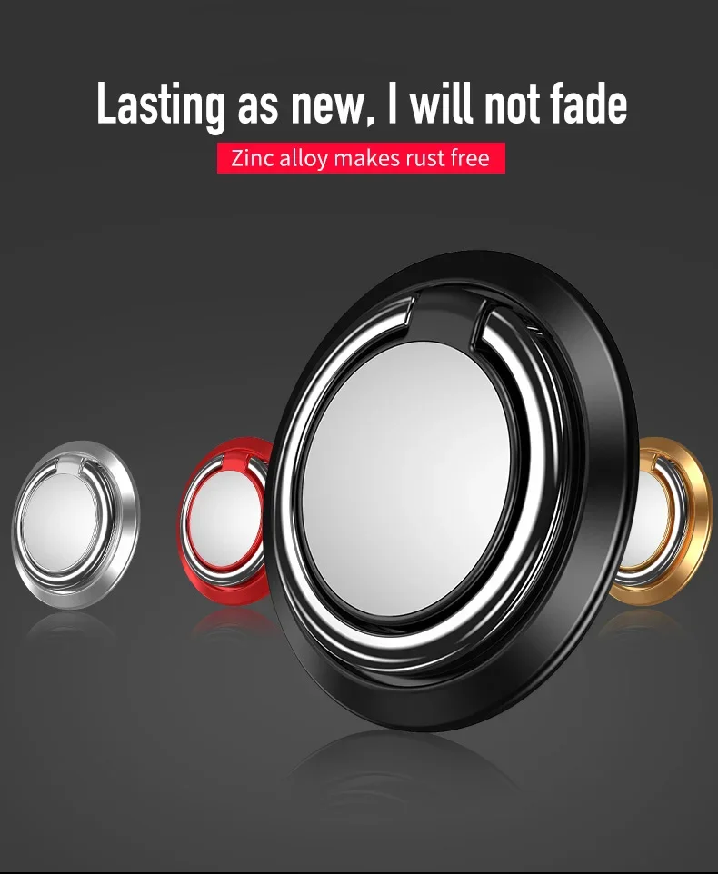 Descripción:1. Agarre cómodo y seguro para evitar que se caiga el dispositivo y el dispositivo de control mientras opera el teléfono y toma fotografías.Puedes tomar selfies, ver tus vídeos favoritos o jugar mientras reduce las posibilidades de que tu teléfono se resbale de tus manos.2. El anillo se puede girar en cualquier dirección horizontal, 360 grados, dirección vertical, 180 grados.3. Nuestro soporte de anillo para teléfono está hecho de acero inoxidable de primera calidad y aleación de zinc y garantiza una duración más larga que cualquier otro soporte para teléfono del mercado.Además, tiene un diseño ergonómico con bordes lisos y pulido a la perfección, por lo que no te preocupes por lastimarte los dedos (el peso máximo para colgar es de 5 kg).4.Para casi todos los teléfonos inteligentes y tabletas5. Presione suavemente el soporte para el dedo contra su teléfono o tableta para que se adhiera firme y por completo.Manténgalo reposado durante al menos 24 horas antes del primer uso.Para quitarlo, simplemente tire de la hebilla.Especificaciones:Material: metal, aleación de zinc.Color: negro/oro/oro rosa/rojo/azul/rosaPeso : 10 gramosTamaño: 4*4*1cmPaquete incluido:1 * soporte para teléfono móvil