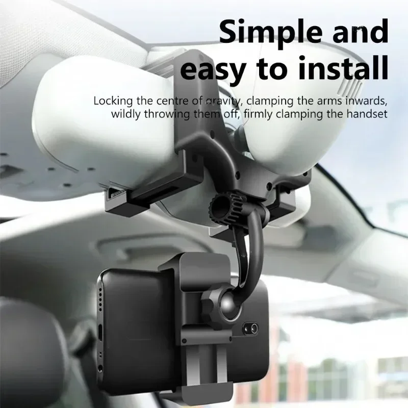1.360° Rotación para una visualización perfecta: disfrute de la flexibilidad del 360 soporte para teléfono para automóvil° Diseño giratorio, que le permite colocar su teléfono sin esfuerzo en cualquier ángulo deseado.Con una longitud de brazo ajustable (0-2 pulgadas), ofrece un ajuste personalizable sin obstruir la vista.(Asegúrese de la compatibilidad con su espejo retrovisor)