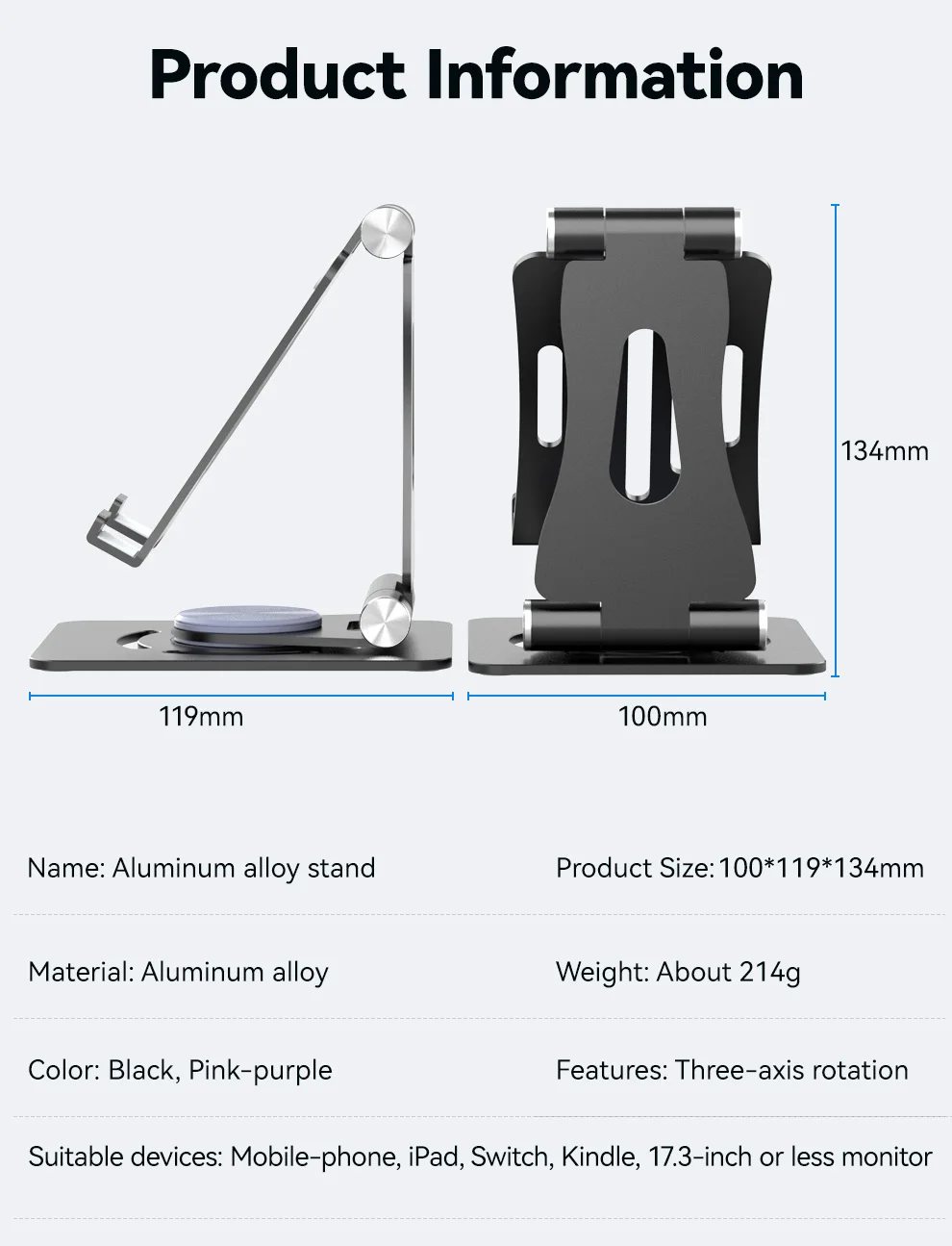 Comprar Soporte Universal de escritorio, aleación de aluminio ajustable, rotación de ángulo de 360 grados, para pantalla de monitor de 7-16,1 pulgadas, ipad, teléfono