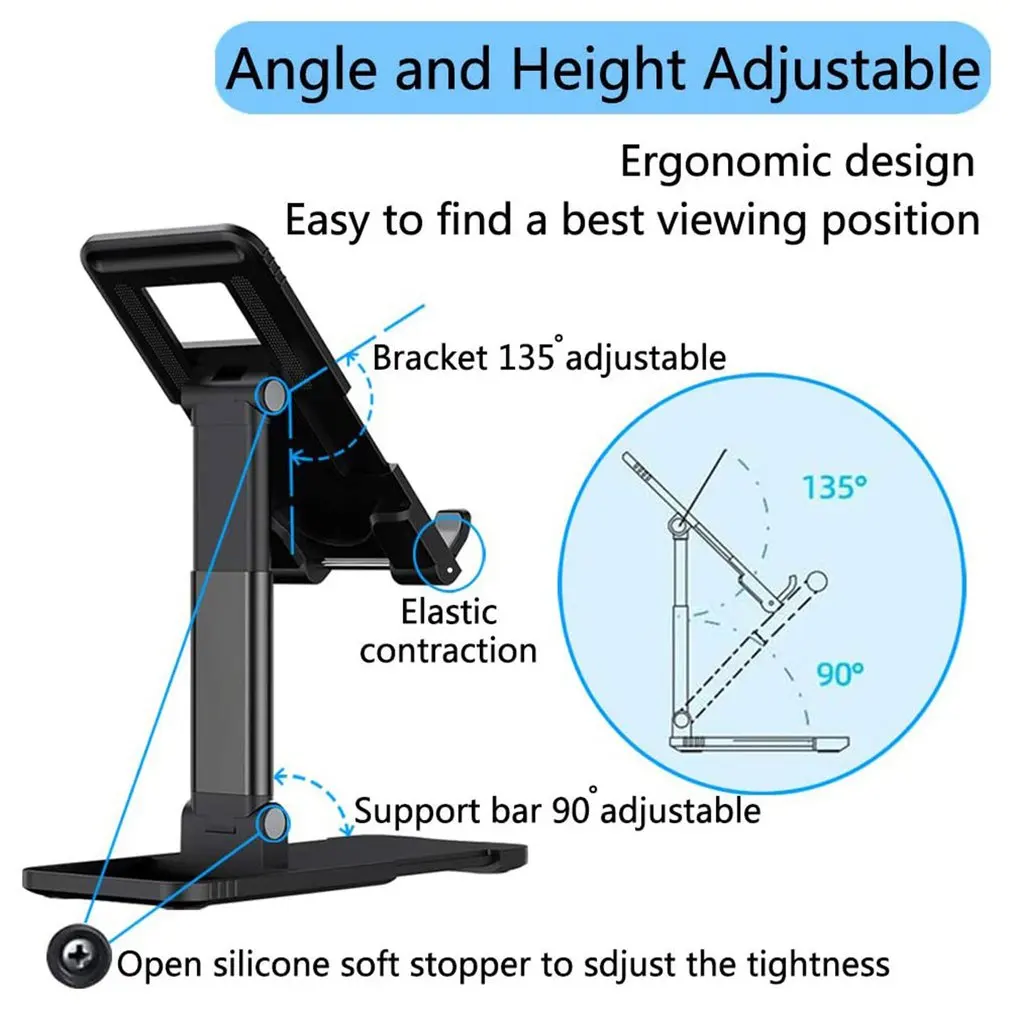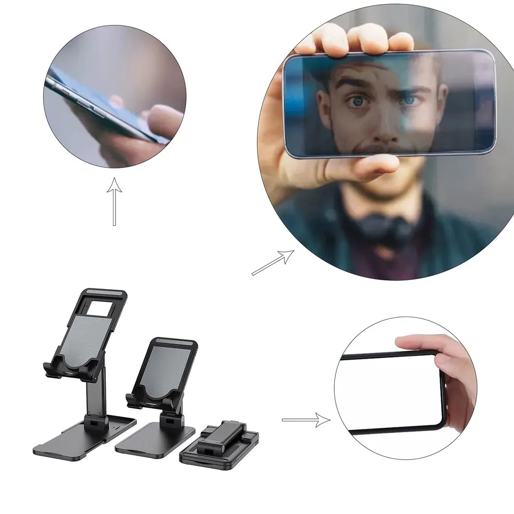 El soporte compacto es adecuado para apoyar teléfonos móviles y tabletas, portátil y ajustable en altura y ángulo.