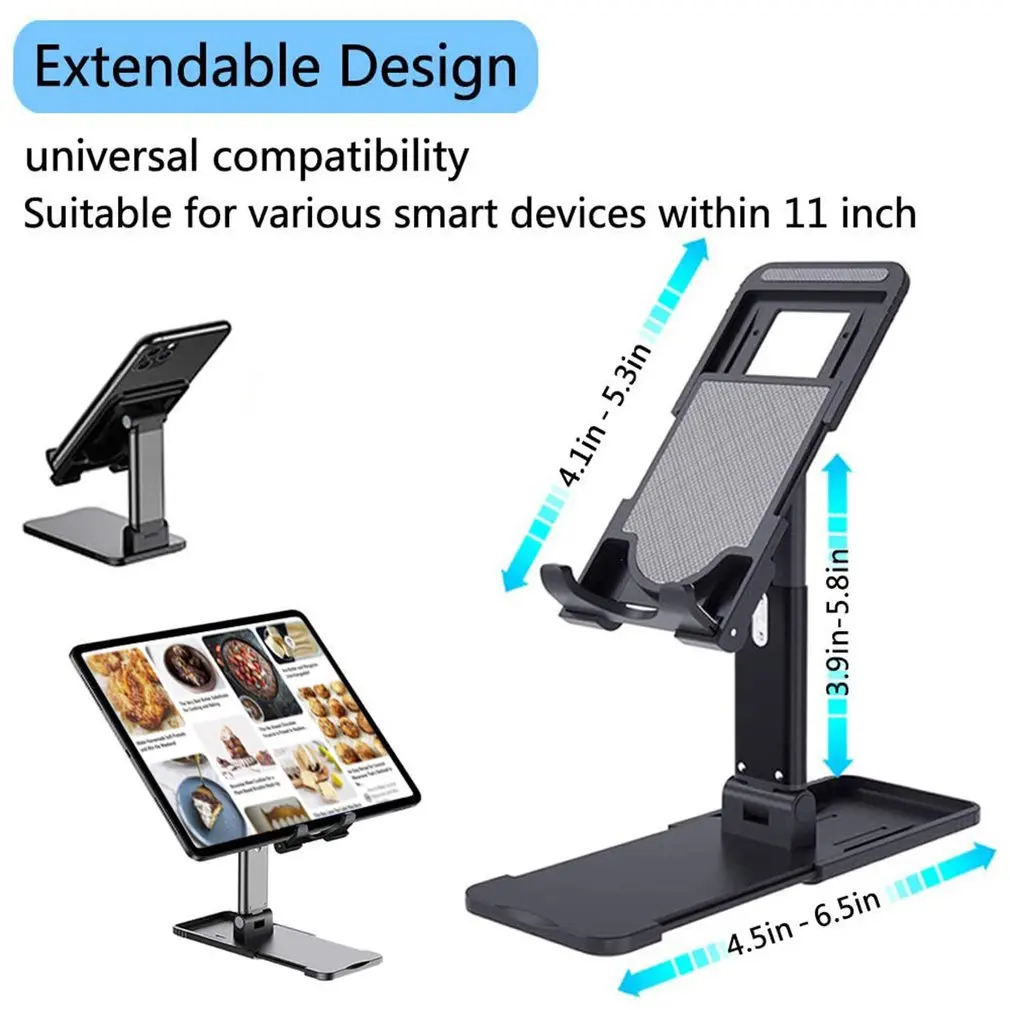El soporte compacto es adecuado para apoyar teléfonos móviles y tabletas, portátil y ajustable en altura y ángulo.