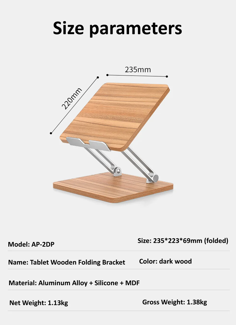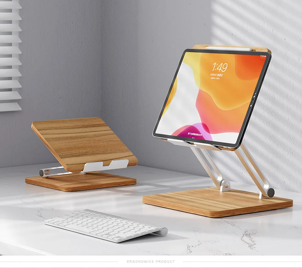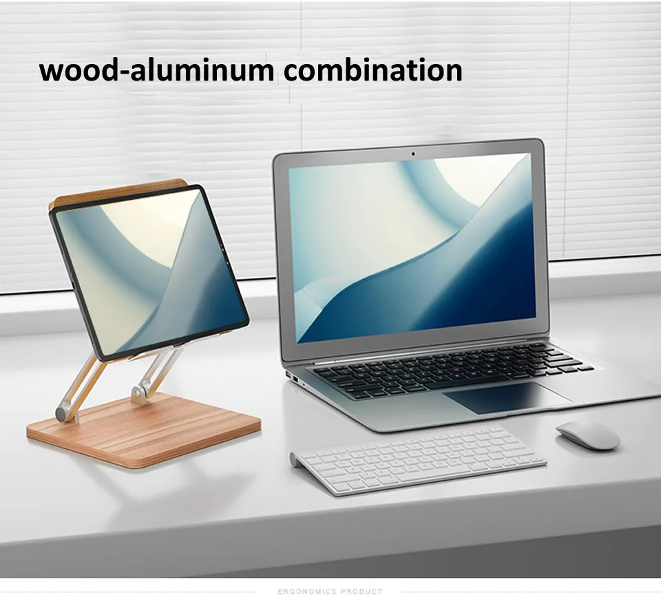 Soporte universal de madera para tableta de escritorio Soporte plegable ajustable de metal para iPad Pro Air