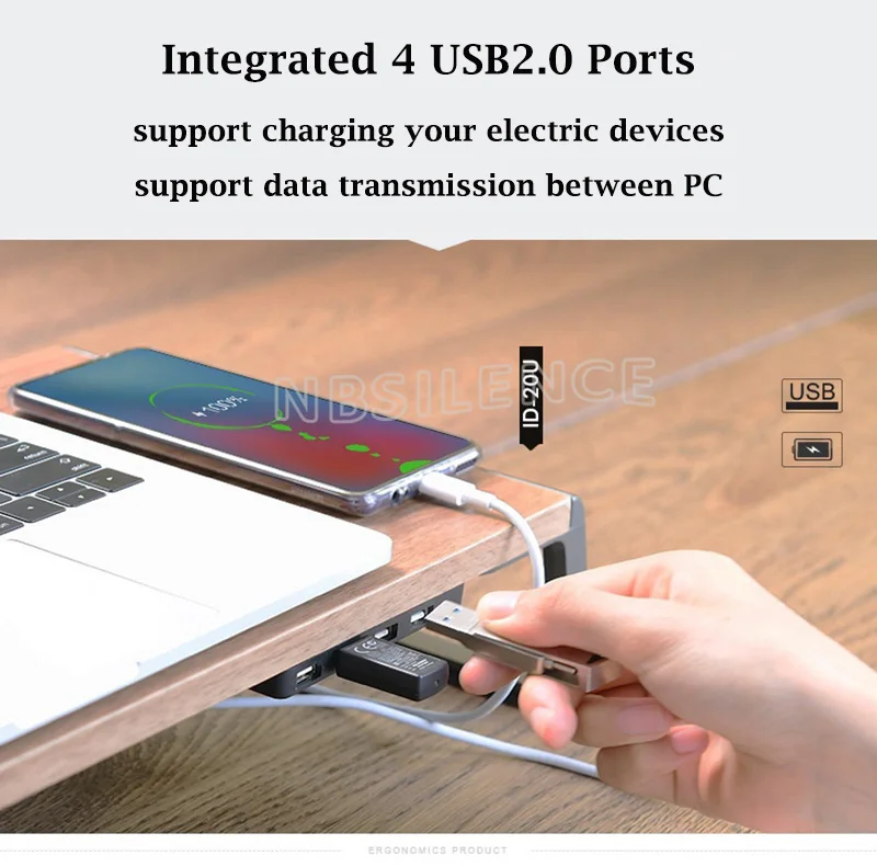 ※【Puertos Hub USB 2,0 integrados 】 -- este escritorio elevador de monitor integrado cuatro puertos USB, dispositivo eléctrico de carga supprt y transmisión de datos.