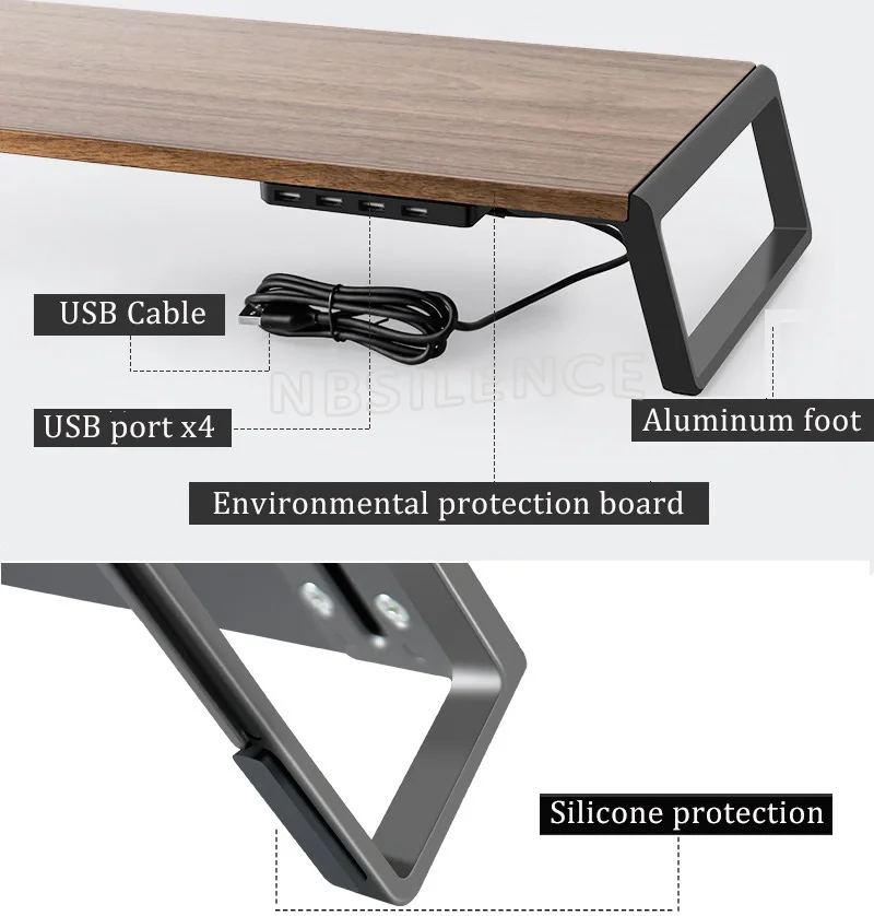 ※【Pies de MDF y aluminio 】 -- este elevador de monitor está hecho de plataforma de MDF y pies de aluminio con almohadilla de silicona insertada, sostiene hasta 10kg(22lbs) sin tambalearse, duradero y resistente.