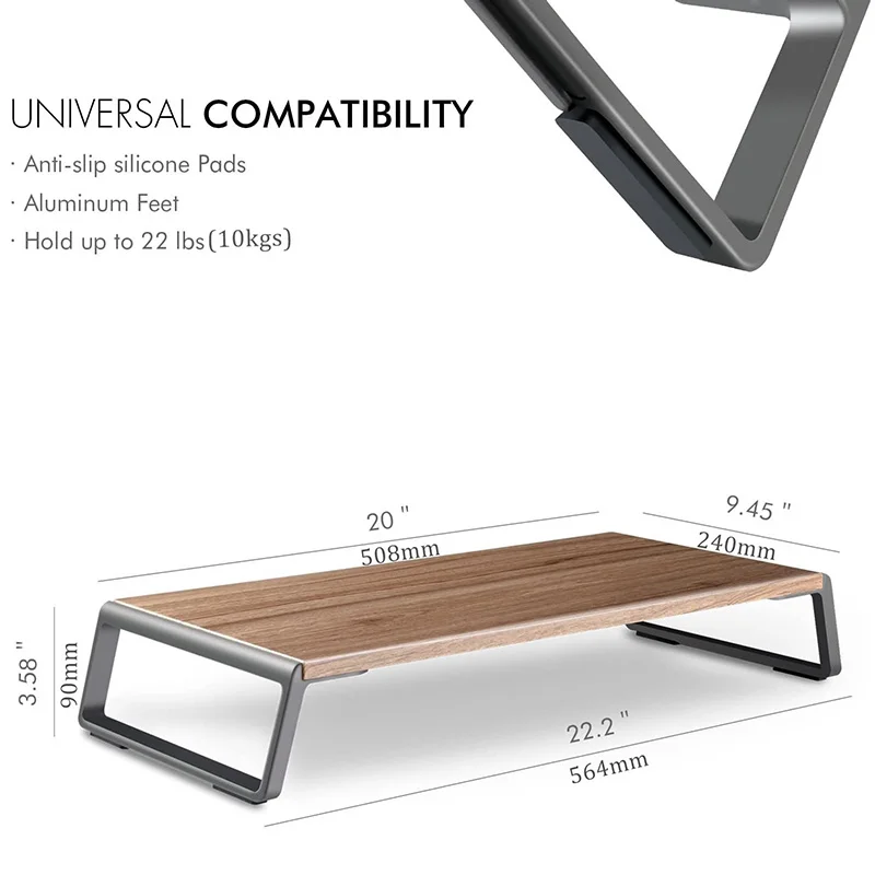 ※【Pies de MDF y aluminio 】 -- este elevador de monitor está hecho de plataforma de MDF y pies de aluminio con almohadilla de silicona insertada, sostiene hasta 10kg(22lbs) sin tambalearse, duradero y resistente.