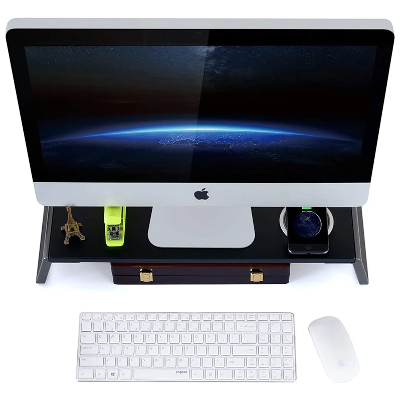 ※【Organizador de escritorio 】 -- este soporte de monitor libera fácilmente más espacio en su escritorio, puede poner papeles, teclado deslizante y ratones debajo del soporte para hacer que su escritorio salga del desorden.