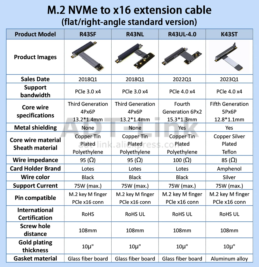 Nombre del producto: cable de extensión en ángulo M.2 NVMe key M a PCI-E X16