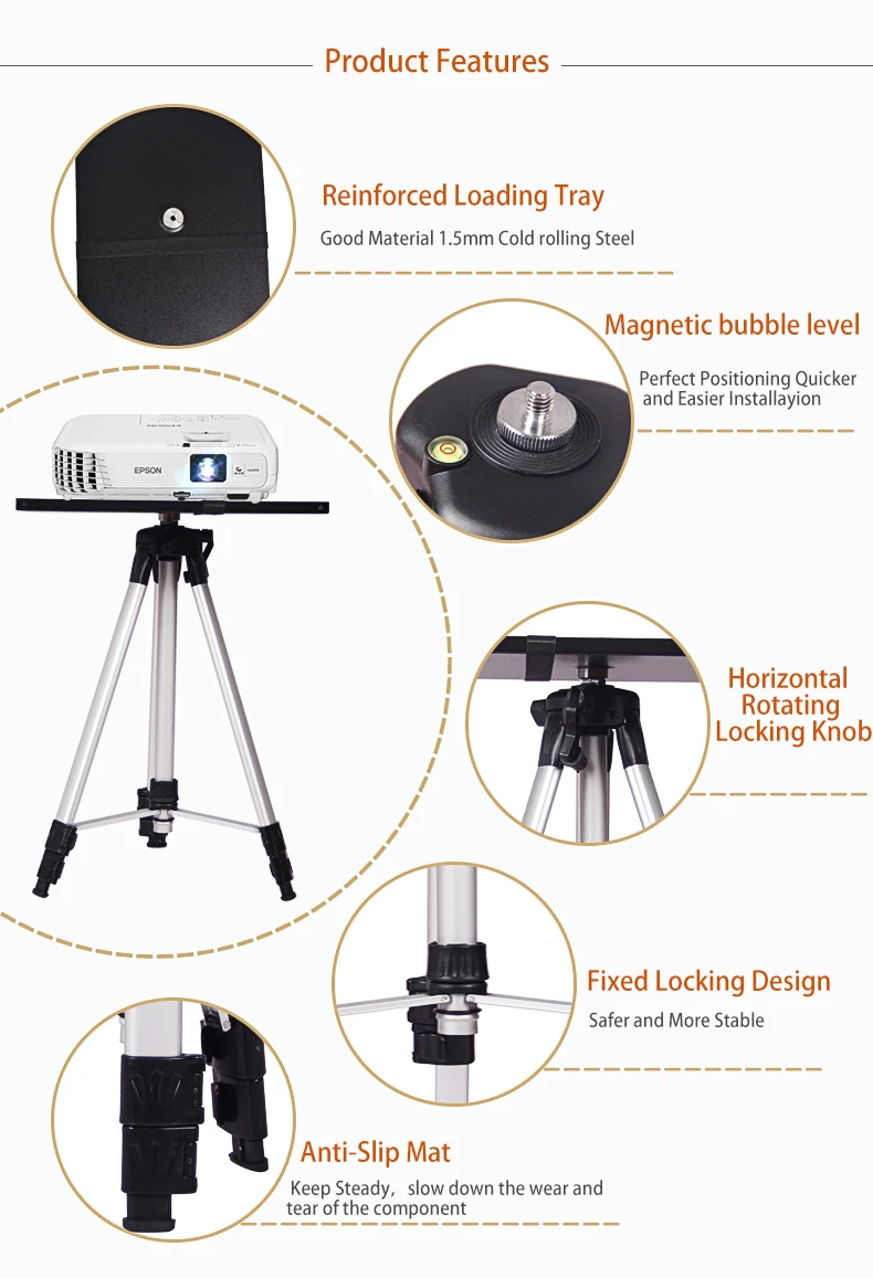 Comprar Soporte Universal para proyector, base de 500-1400mm para portátil, altura ajustable, reproductor de DVD, soporte de suelo con bandeja