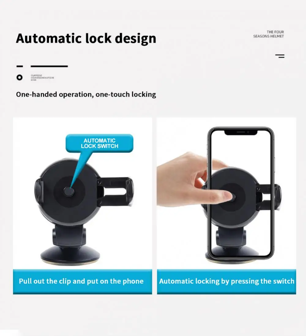 4. Coloque el teléfono móvil, presione el bloqueo automático para fijarlo y ajuste el teléfono móvil a un ángulo apropiado