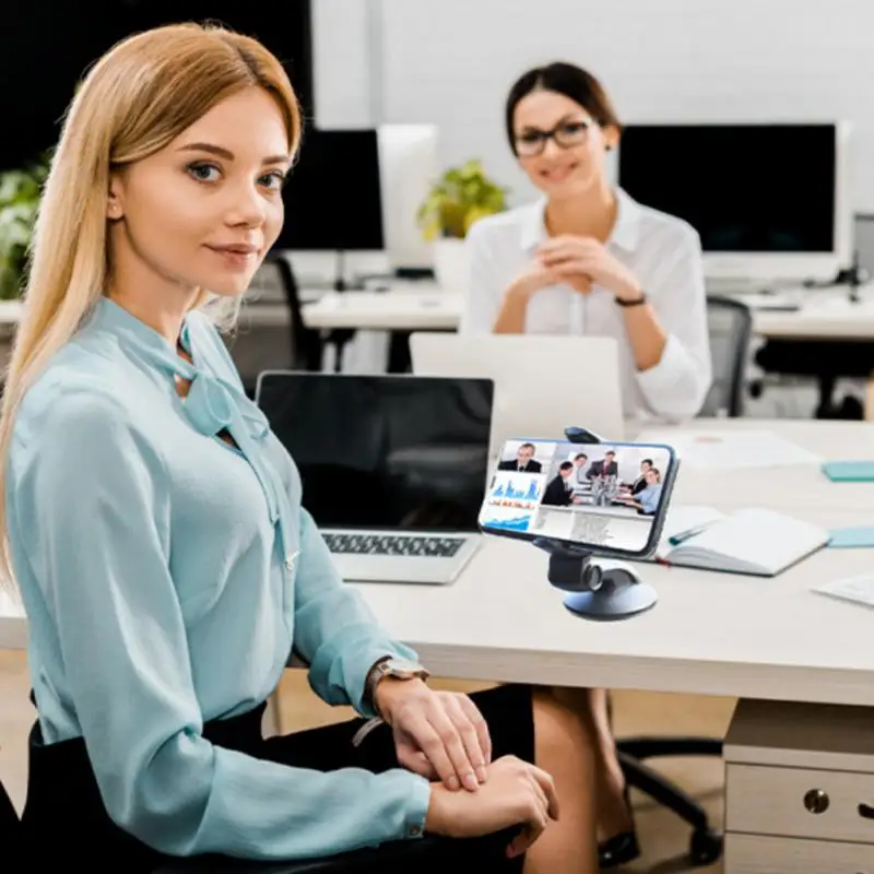4. Coloque el teléfono móvil, presione el bloqueo automático para fijarlo y ajuste el teléfono móvil a un ángulo apropiado