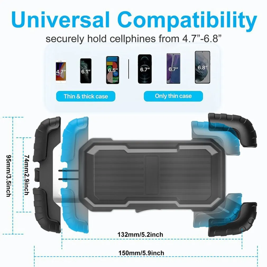 2. Amplia compatibilidad: Soporte universal para teléfono móvil de bicicleta de 4,7 y 6,8 pulgadas con un grosor de hasta 15mm (incluida la funda del teléfono),