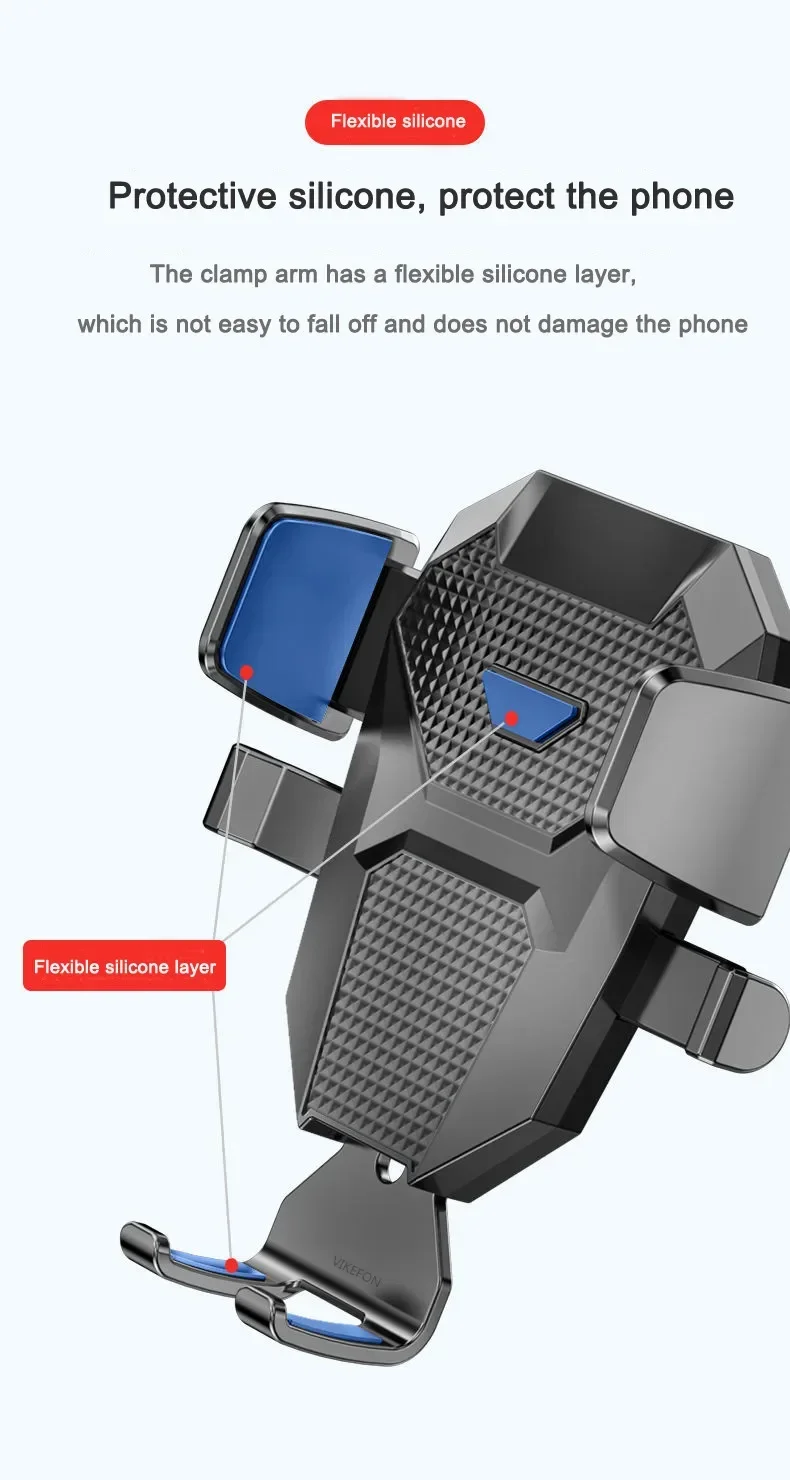 Operación con una sola mano:El soporte para teléfono móvil del coche también cuenta con un sistema de liberación de un botón que le permite bloquear o liberar su teléfono con una sola operación de mano. Se adapta bien a todos los teléfonos móviles entre 4 ''-7'' de ancho y carcasa más gruesa.