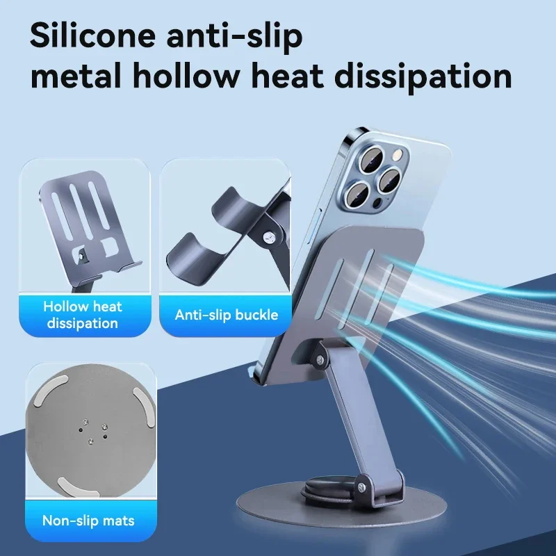 Soporte Universal para teléfono móvil, totalmente metálico, aluminio, rotación de 360 grados, soporte de escritorio, diseño plegable de doble eje, estable, anticaída