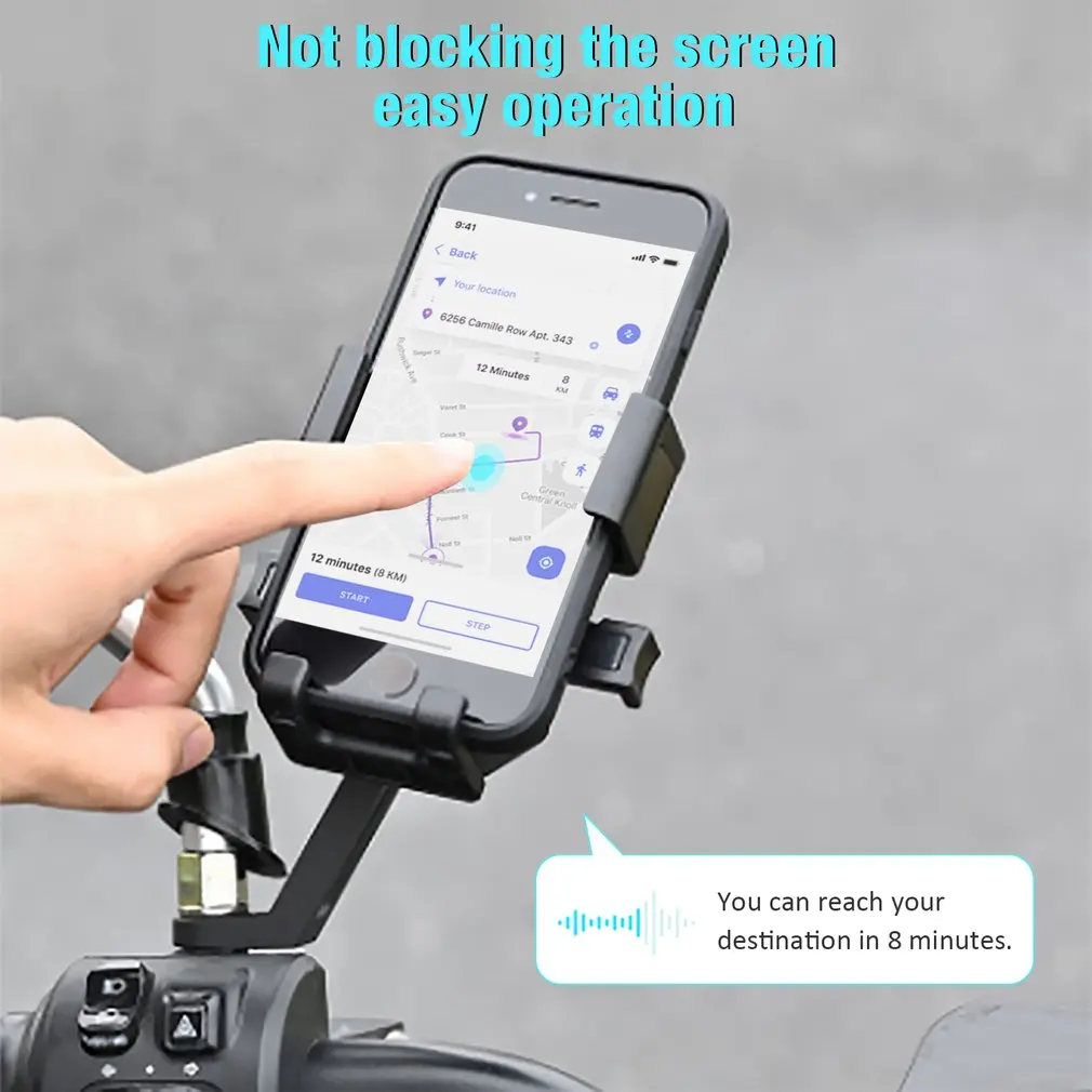 5. Soporte para teléfono móvil de motocicleta estable y seguro: el soporte para teléfono móvil de motocicleta proporcionará una excelente protección para su teléfono móvil y garantizará una conducción más segura. El cabezal giratorio le brinda el mejor ángulo de visión, lo que le permite cambiar rápidamente a cualquier dirección que desee.