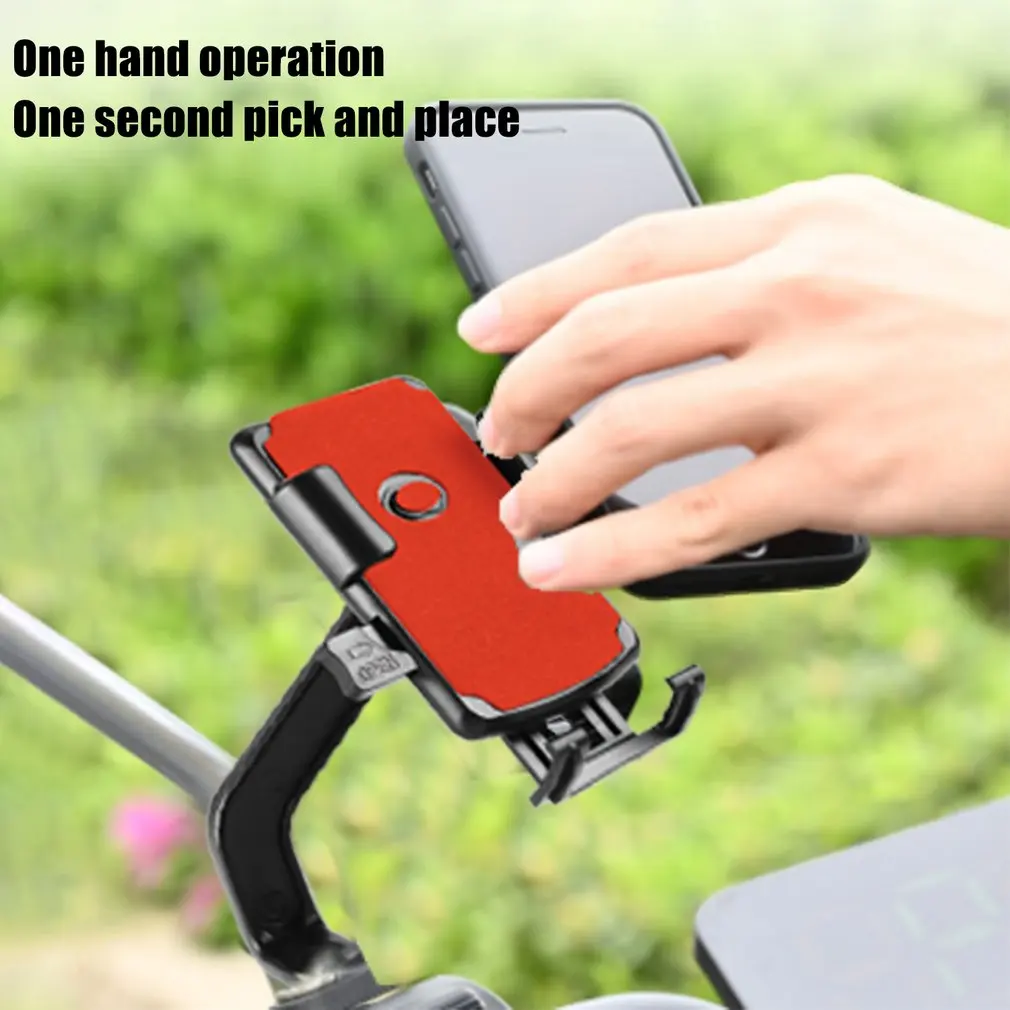 El soporte para teléfono de motocicleta es compatible con la mayoría de los teléfonos y dispositivos, como fundas de teléfono más gruesas, navegación, etc. Es muy conveniente y rápido de usar, lo que le permite usarlo muy convenientemente.