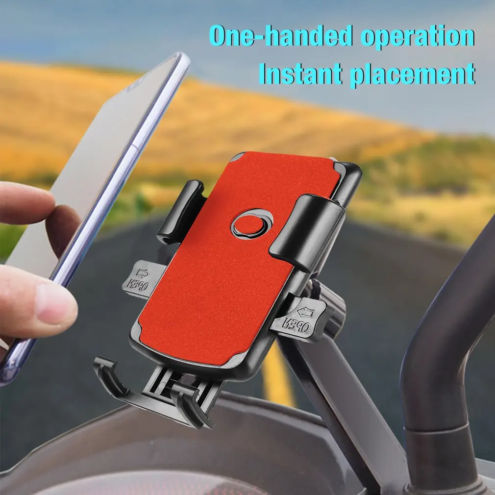 3. Funcionamiento con una sola mano: el soporte para teléfono de motocicleta tiene un botón de liberación rápida y brazos de clip ajustables, es muy fácil de insertar y sacar el teléfono con una mano. Ya sea que esté hablando, navegando, escuchando música o cargando, le proporciona una experiencia de conducción más segura.