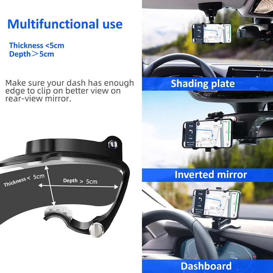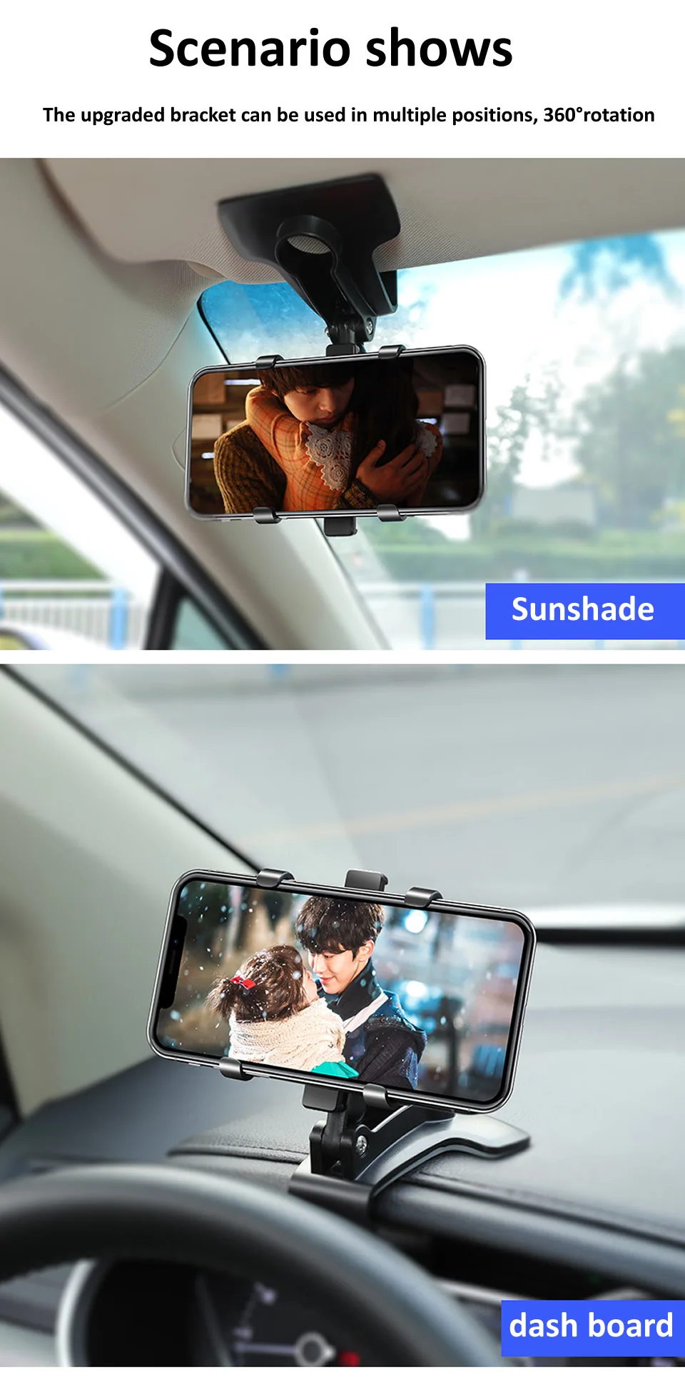 1. Diseño ligero, adecuado para teléfonos móviles de 3-7 pulgadas, se puede instalar en el salpicadero, el espejo retrovisor y el parasol (consejos: este soporte para teléfono móvil se puede usar en casa)