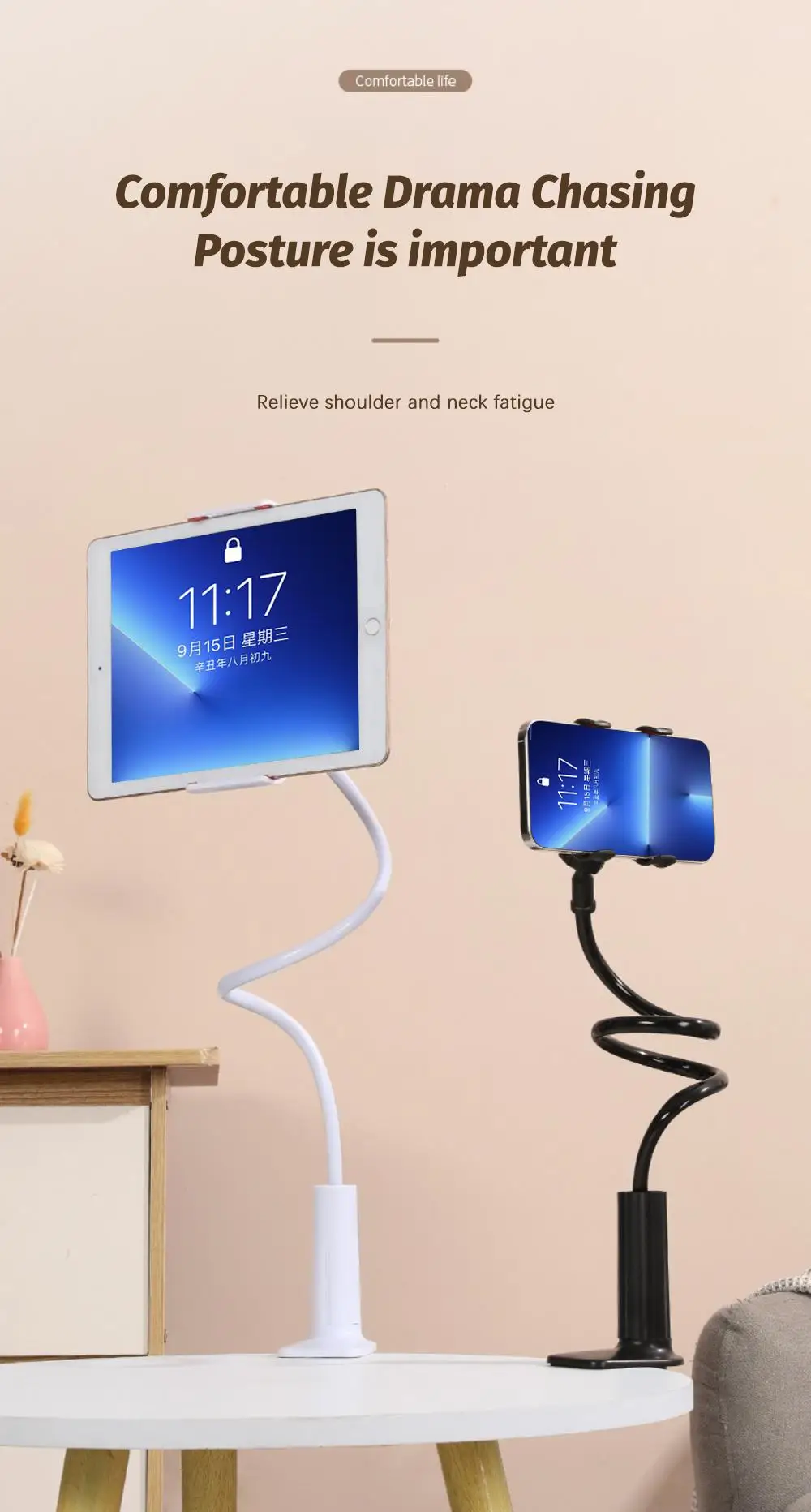 【Soporte para teléfono móvil cómodo y ajustable】¡Disfruta de visualización y transmisión con manos libres!