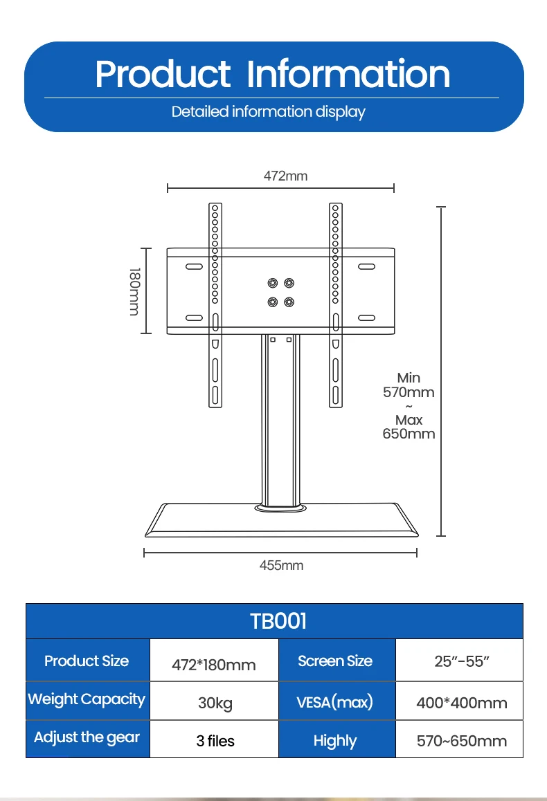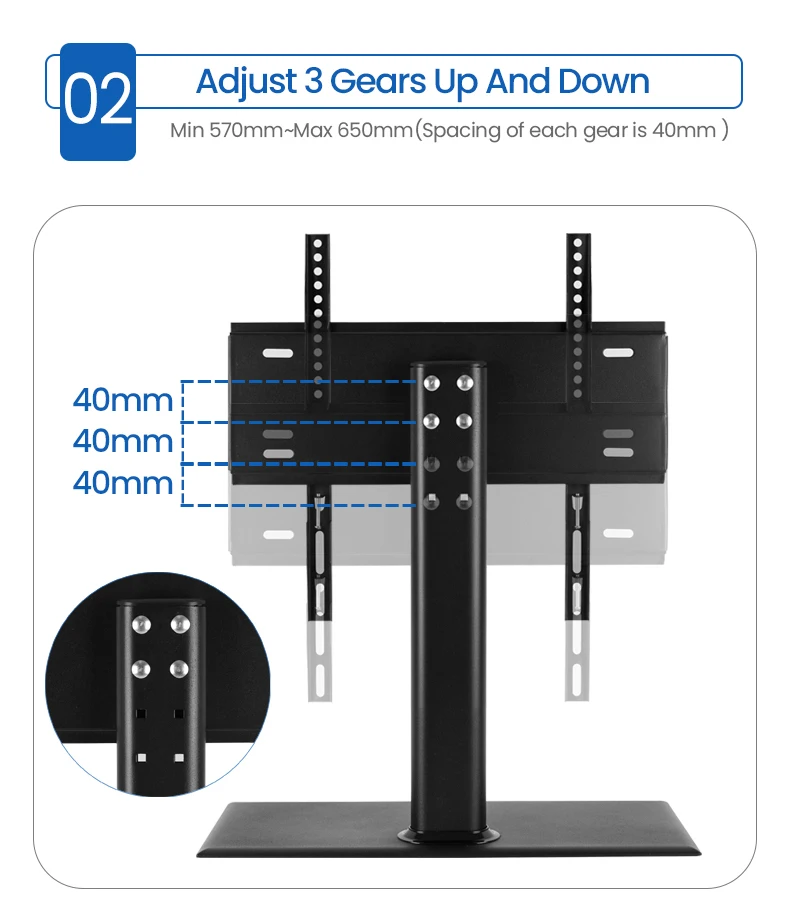 ALTURA AJUSTABLE:Este soporte de TV Universal lo tiene todo. Instalación de 15 minutos, 3 posiciones para adaptarse a diferentes aplicaciones o tamaños de TV