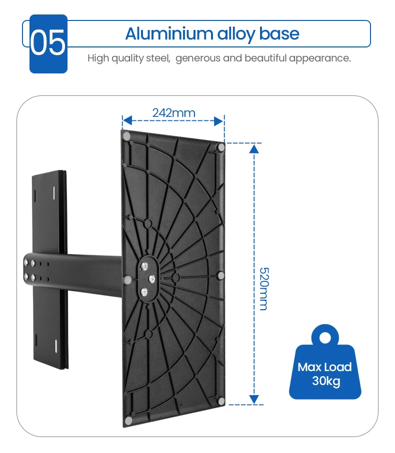 DISEÑO UNIVERSAL:El diseño de soporte de montaje de TV universal se adapta a la mayoría de televisores LCD/LED/Plasma de pantalla plana de 25-55 "hasta 110 libras, VESA (patrón de orificios de montaje)-La placa frontal compatible se adapta a VESA 100X100mm (4” X4 ”) 200X100mm (8" x 4 ") 200X200mm(8" x 8 ") 300X200mm (12" x 8 ") 300X300mm (12" x 12 ") 400X300mm (16" x 12 ") 400X400mm (16" x 16 ")