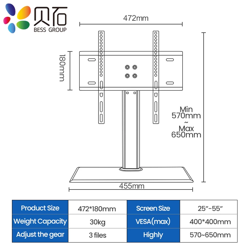 Soporte de escritorio de TV universal para la mayoría de televisores de pantalla plana LCD de 25-55"