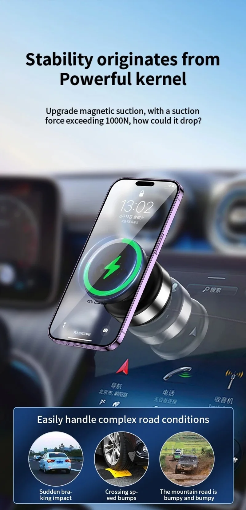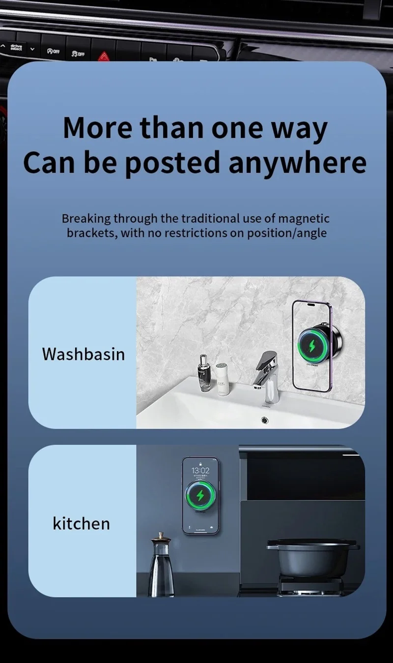 Soporte magnético de vacío eléctrico para teléfono de coche, cargador inalámbrico, ventosa, espejo para gimnasio, baño, ducha, soporte para Iphone 16 15 14 SamsungNOTA: Para superficies no lisas, utilice nuestra cinta transparente de doble cara.