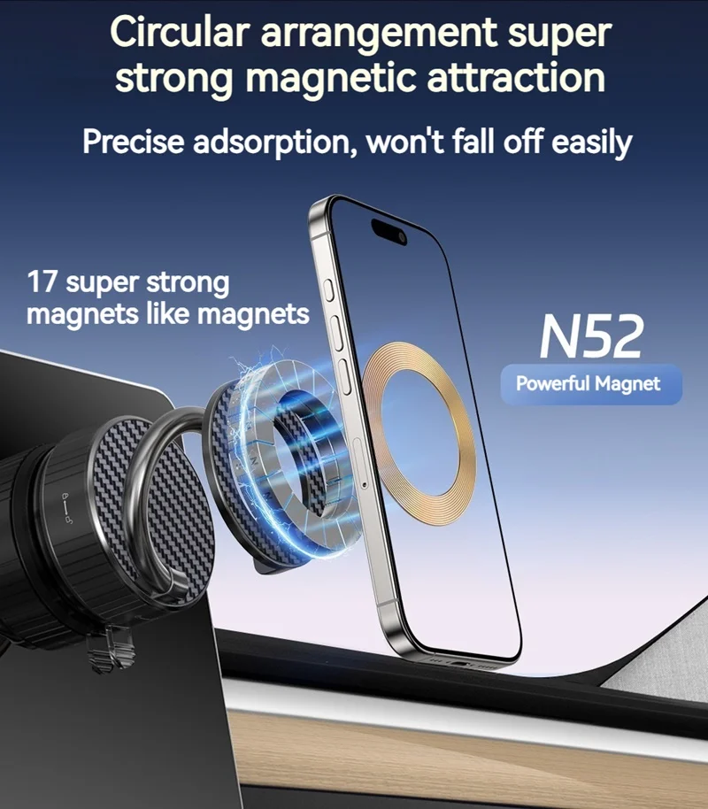Llegó rápido, muy bien hecho, el imán es realmente fuerte, solo acerca el teléfono y se adhiere de inmediato en su lugar, excelente compra.