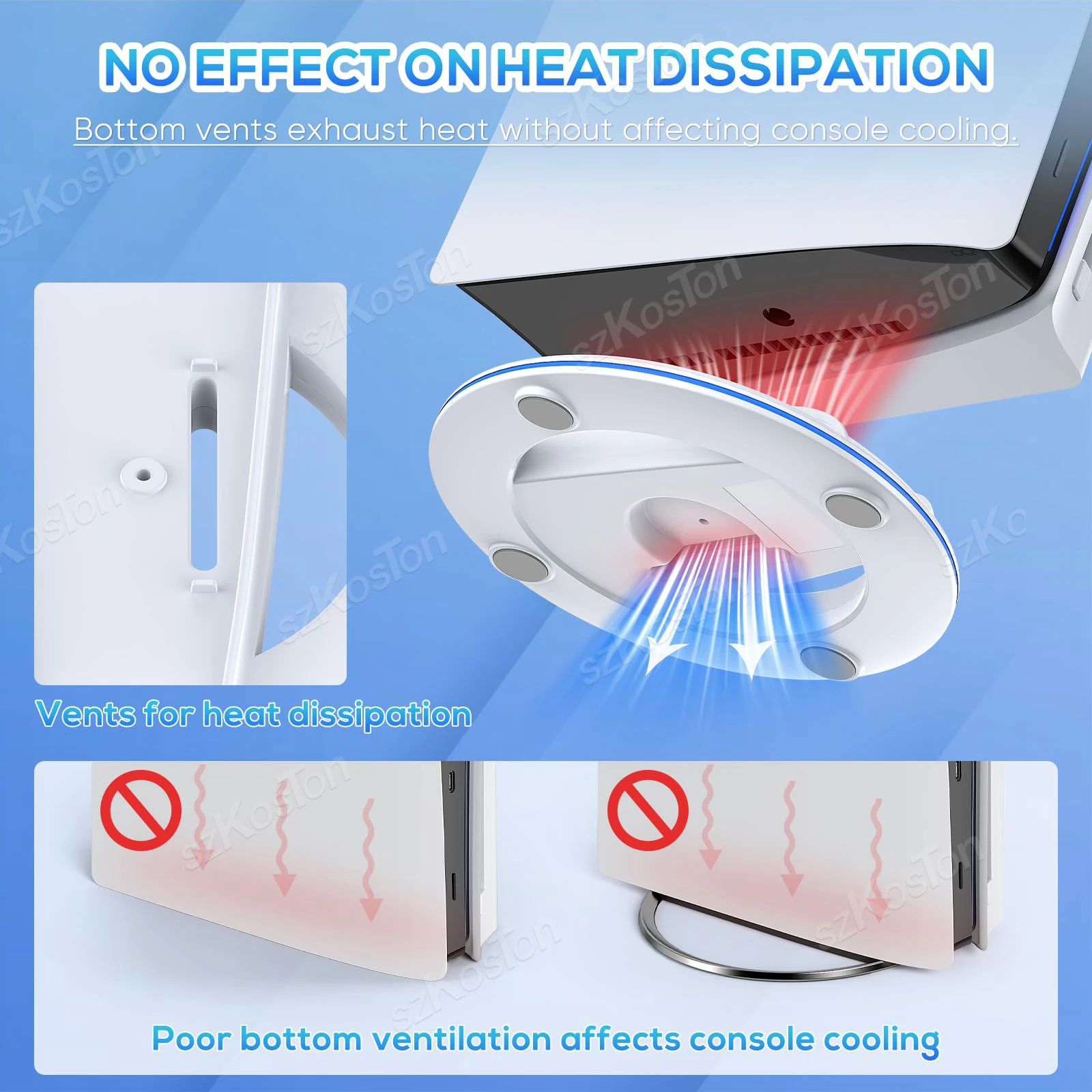 【Estructura para una mejor disipación del calor】Las rejillas de ventilación en la parte inferior no evitan la disipación de calor de la consola.Szkoston