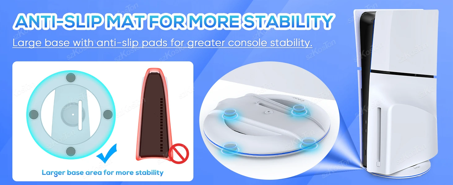 【Buy estable】 Almohadilla antideslizante para los pies y diseño de material ABS duradero para mantener la consola estable y segura, lo que hace que los accesorios para PS5 Slim no sean fáciles de volcar.