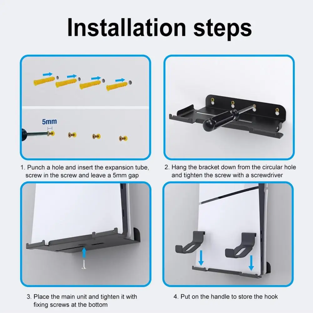 Consola de juegos Soporte vertical Ps5 Consola de juegos delgada Soporte de montaje en pared con gancho de almacenamiento Soporte de carga fuerte para simple