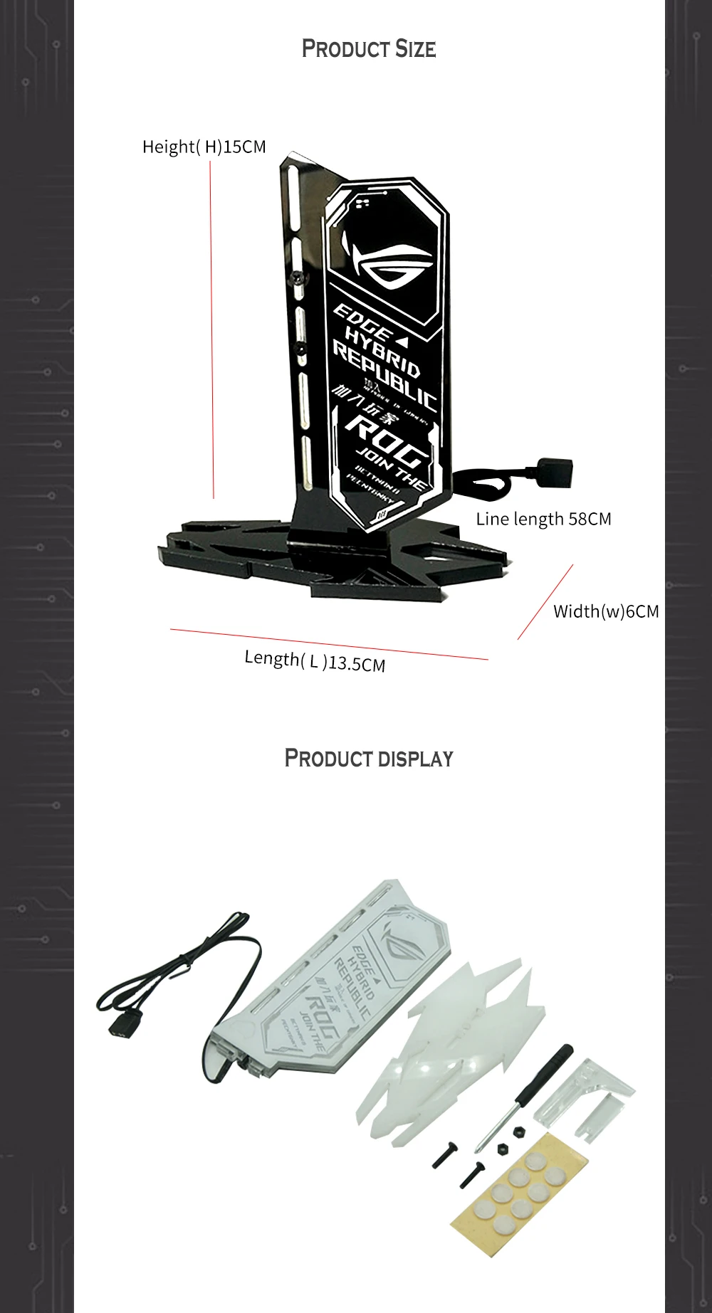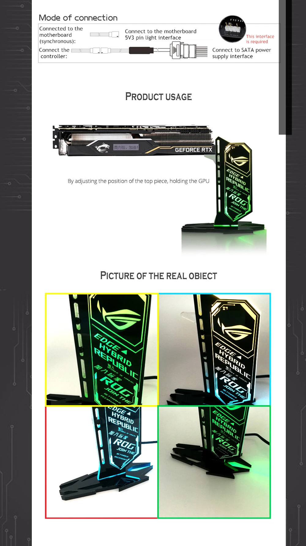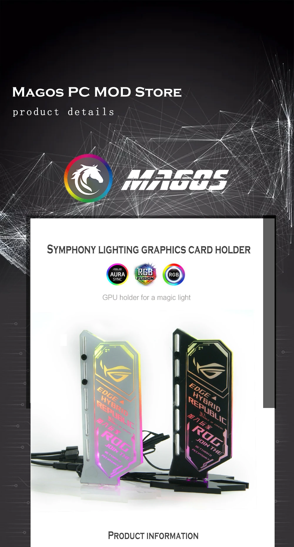 Comprar Soporte Vertical GPU con luz LED RGB, soporte para tarjeta gráfica, 5V, pequeño, 4 pines, soporte VGA para accesorios de chasis de ordenador