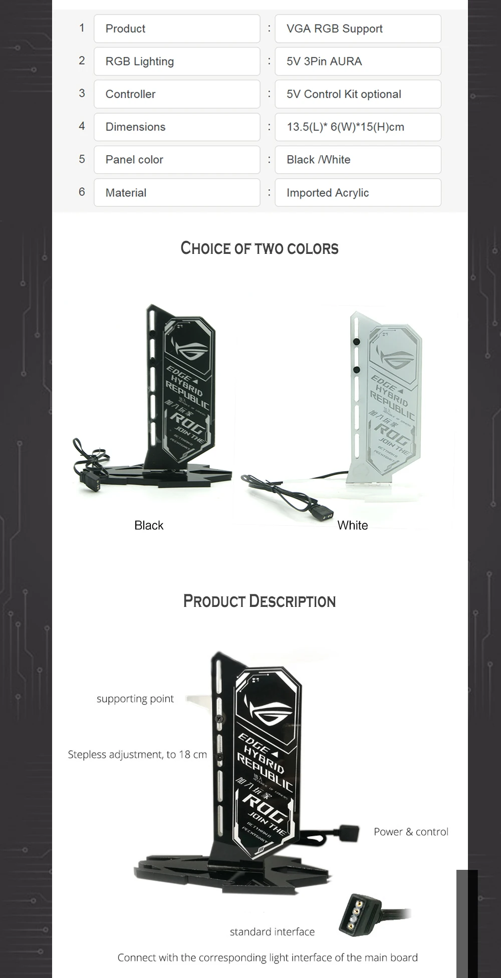 Comprar Soporte Vertical GPU RGB/Soporte VGA ROG 5V AURA soporte colorido chasis MOD gabinete de enfriador de agua negro/blanco