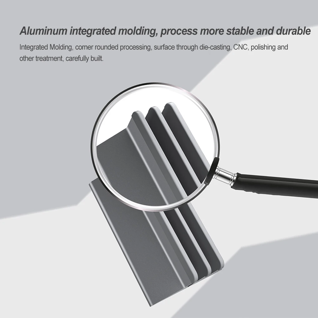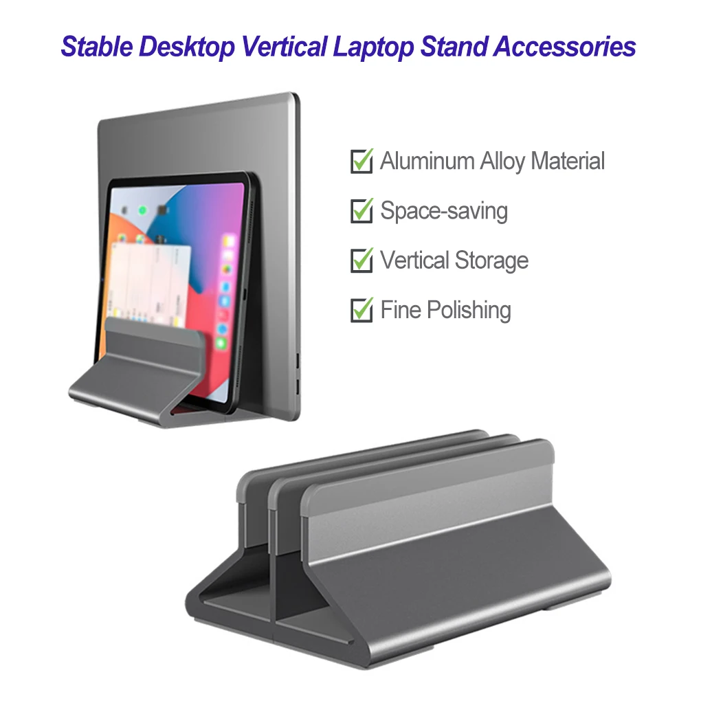 Material de aleación de aluminio: este soporte vertical para portátil está hecho de material de alta calidad, que es duradero para el uso a largo plazo.