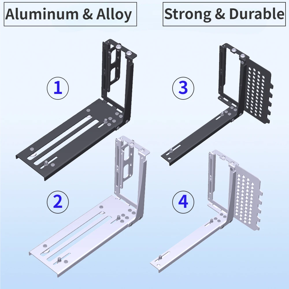 DIY aluminio 2 ranuras VGA tarjetas gráficas soporte Vertical Riser PCI E GPU Stent soporte montaje Kit para PC externo ATX CASE