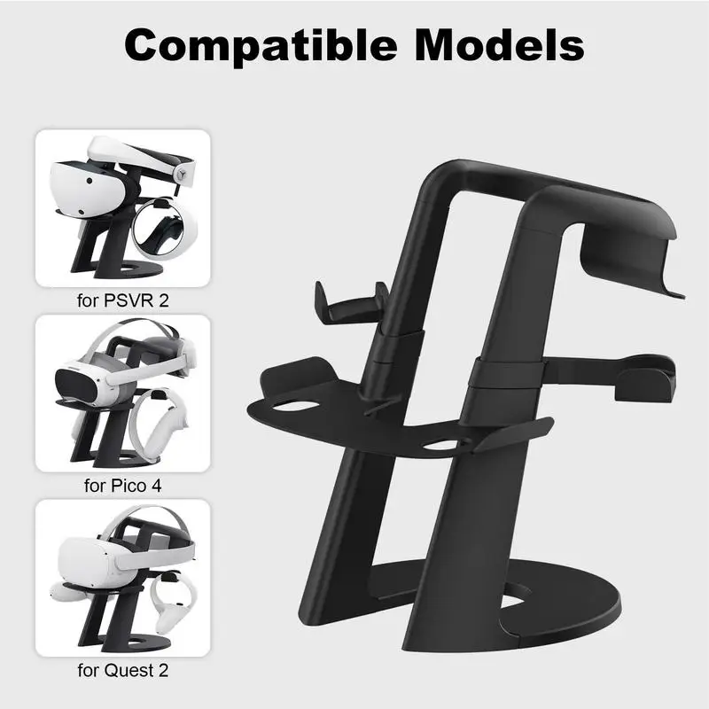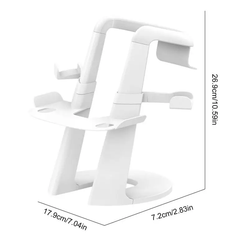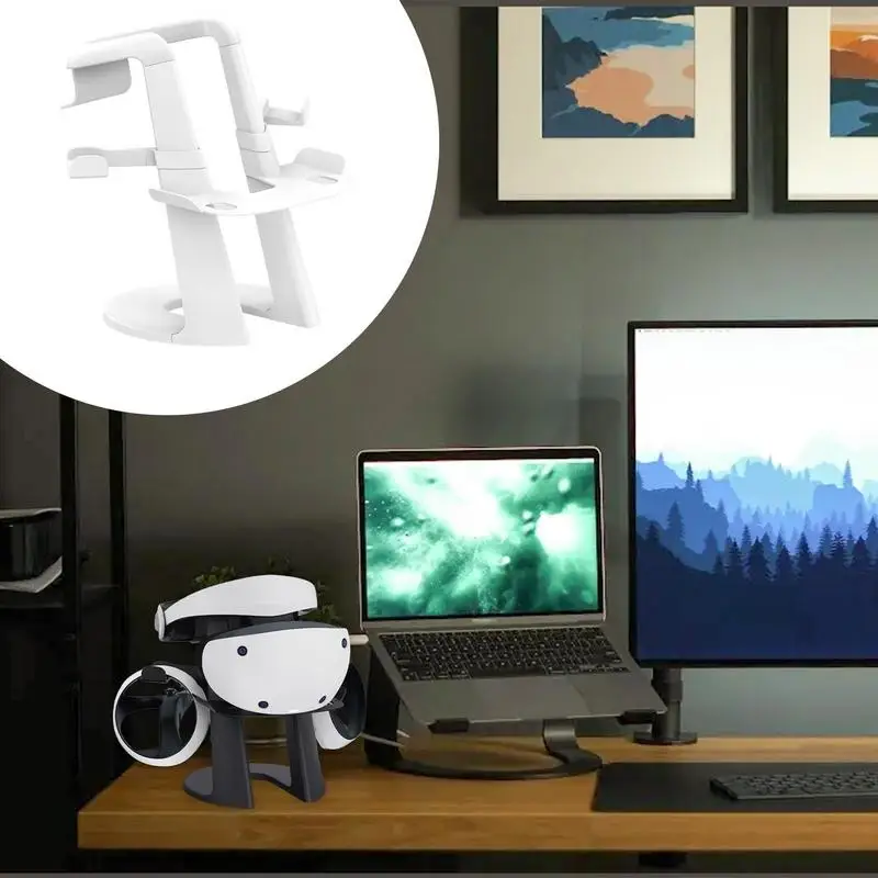 1. El soporte en el medio está diseñado para admitir auriculares VR de realidad virtual para un mejor almacenamiento de su paquete de dispositivos y mostrar firmemente su sistema en posición vertical: un ahorro de espacio compacto y todo en. Un organizador de escritorio.