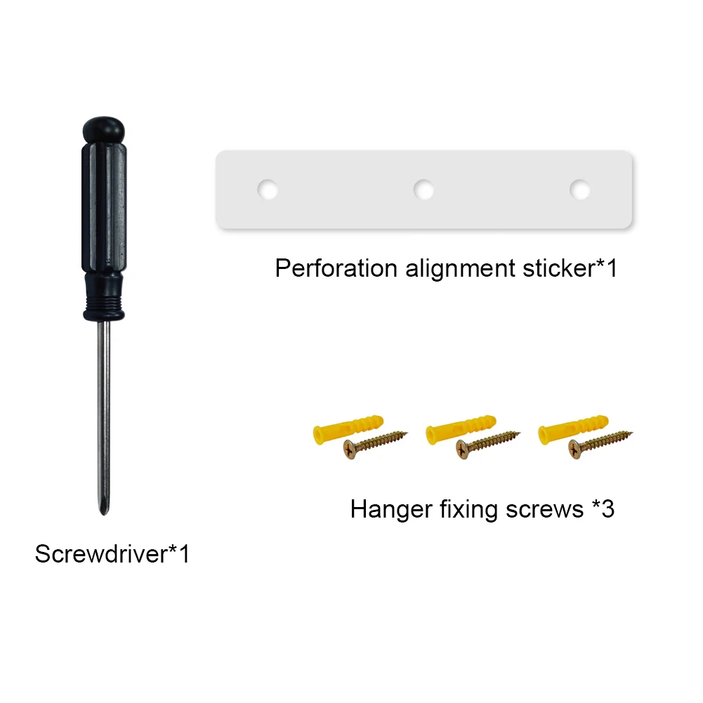 3.Herramientas de instalación convenientes:El gancho de almacenamiento del soporte VR viene con pegatinas de alineación, un destornillador y tornillos de montaje, lo que proporciona todo lo que necesita para una instalación fácil y precisa.