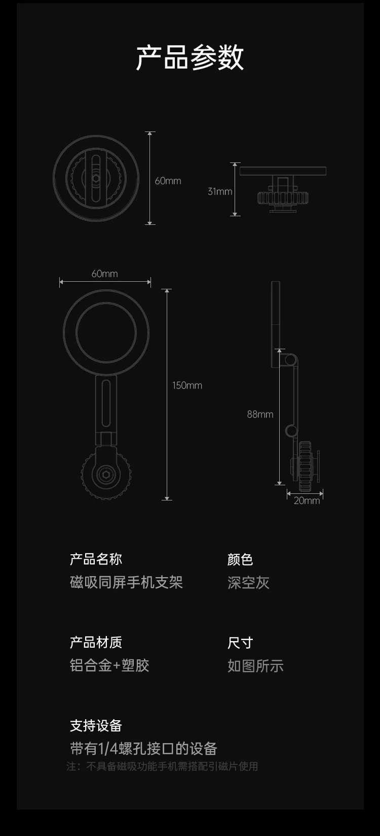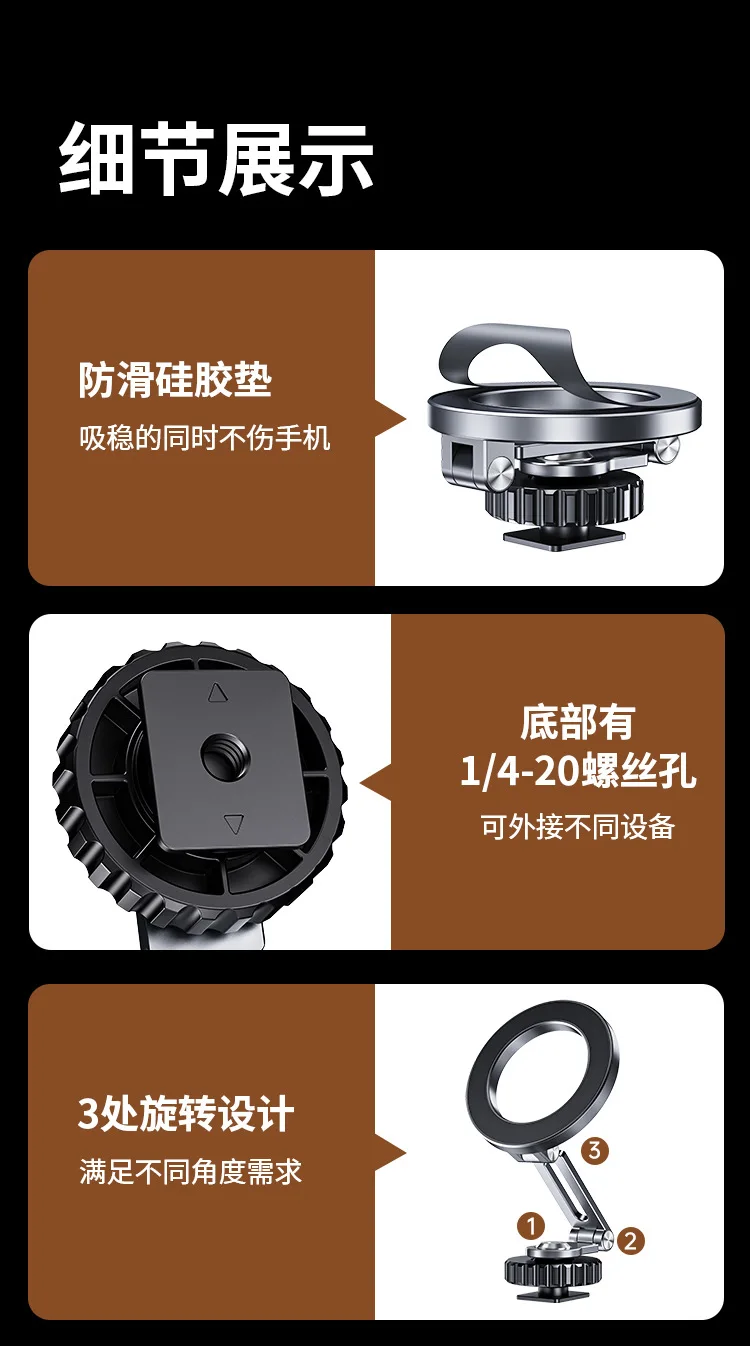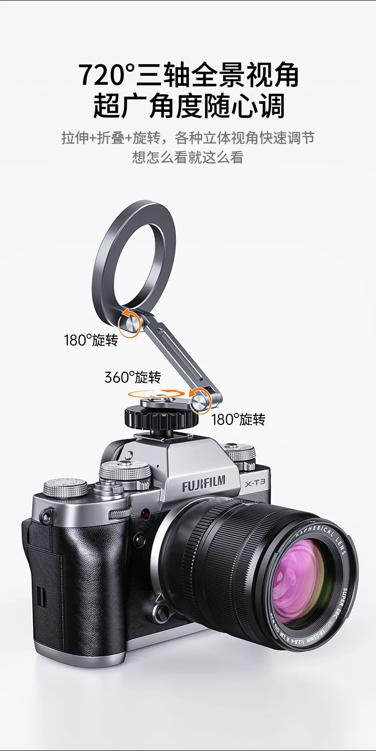 Soportes magnéticos para teléfono con cámara, soporte de teléfono de liberación rápida para iPhone 16 Pro Max/15 Pro, teléfono inteligente plegable magnético Vlog Live