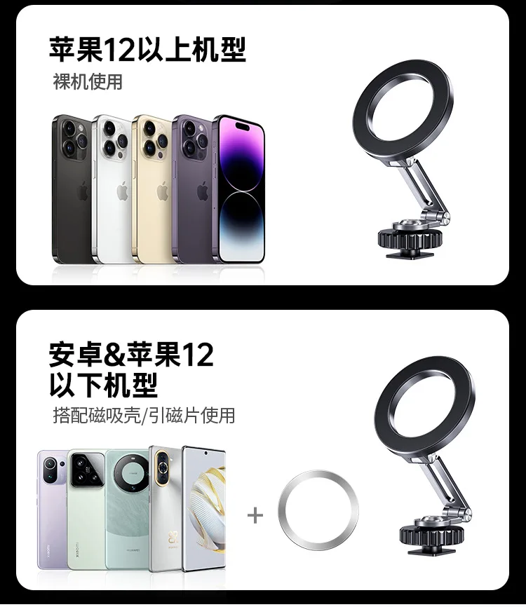 Comprar Soportes magnéticos para teléfono con cámara, soporte de teléfono de liberación rápida para iPhone 16 Pro Max/15 Pro, teléfono inteligente plegable magnético Vlog Live