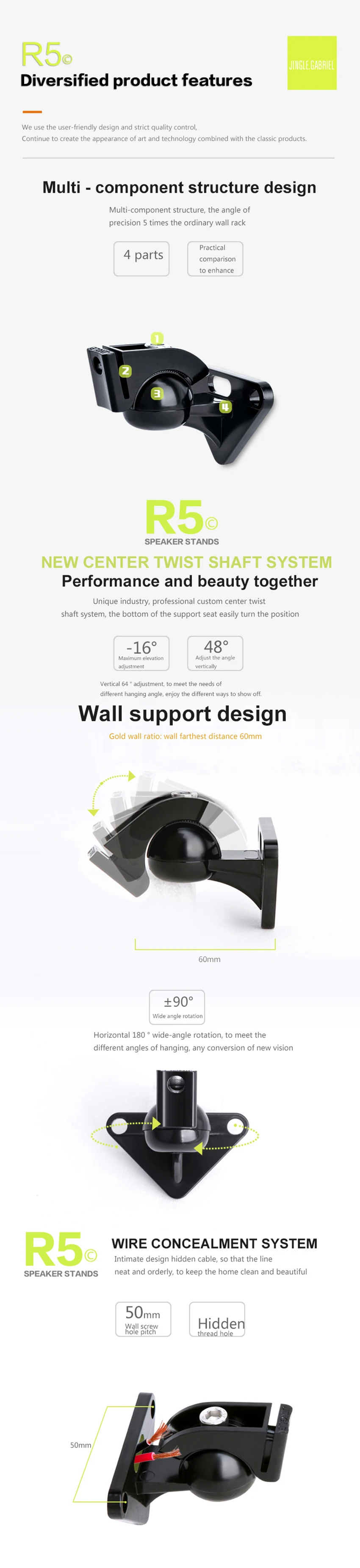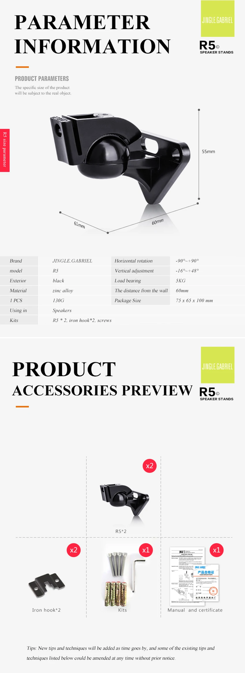 Comprar Soportes de montaje en pared universales R5 de aleación de Zinc, soporte de altavoz envolvente, suspensión de altavoz giratoria de inclinación, carga de 5kg, 1 par (2 piezas)