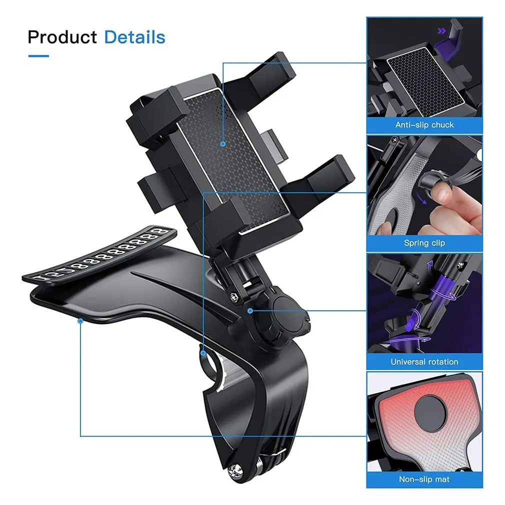 Soportes para teléfono móvil de 1200 grados, espejo retrovisor, parasol en el coche, soporte de navegación GPS, tablero ajustable, soporte para teléfono de coche