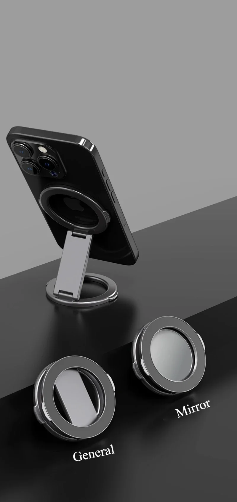 Soportes para teléfonos móviles Magsafe, soportes de escritorio universales portátiles giratorios de doble cara con fuerte succión de Metal magnético