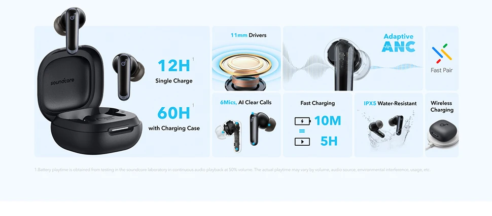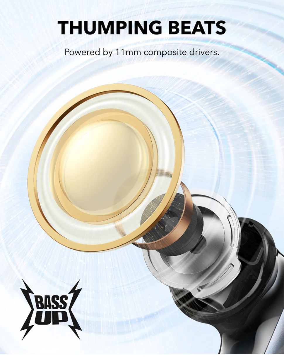 Los auriculares inalámbricos Soundcore P40i cuentan con controladores compuestos de 11 mm para una experiencia de audio intensiva.