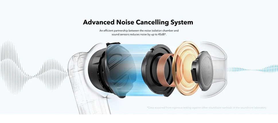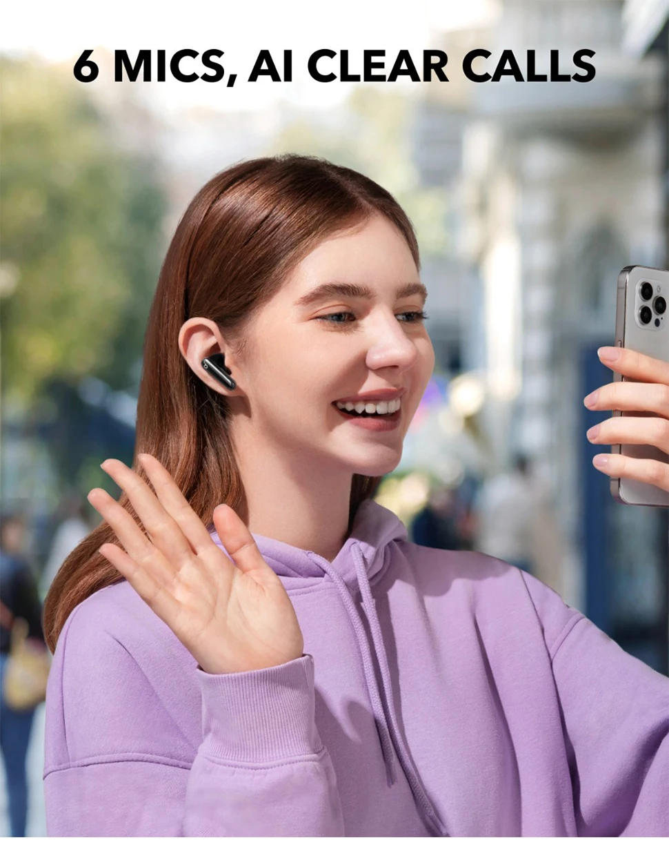 Los auriculares con cancelación de ruido Soundcore P40i mejorados por 6 micrófonos y un algoritmo de IA le permiten disfrutar de una comunicación clara.