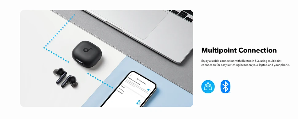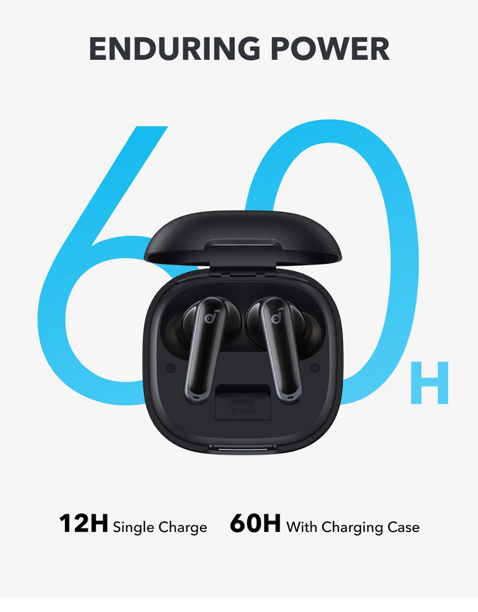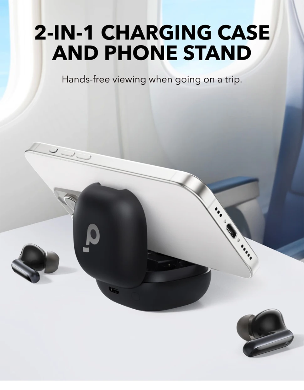 Los auriculares inalámbricos Soundcore P40i cuentan con un estuche de carga único, que funciona como soporte para teléfono,