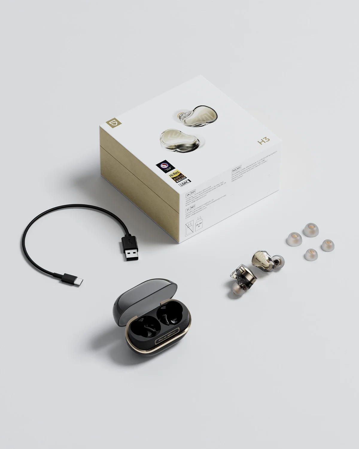 1 Dynamic Driver + 2 Balanced Armatures (per earbud): A classic triple-driver acoustic configuration.