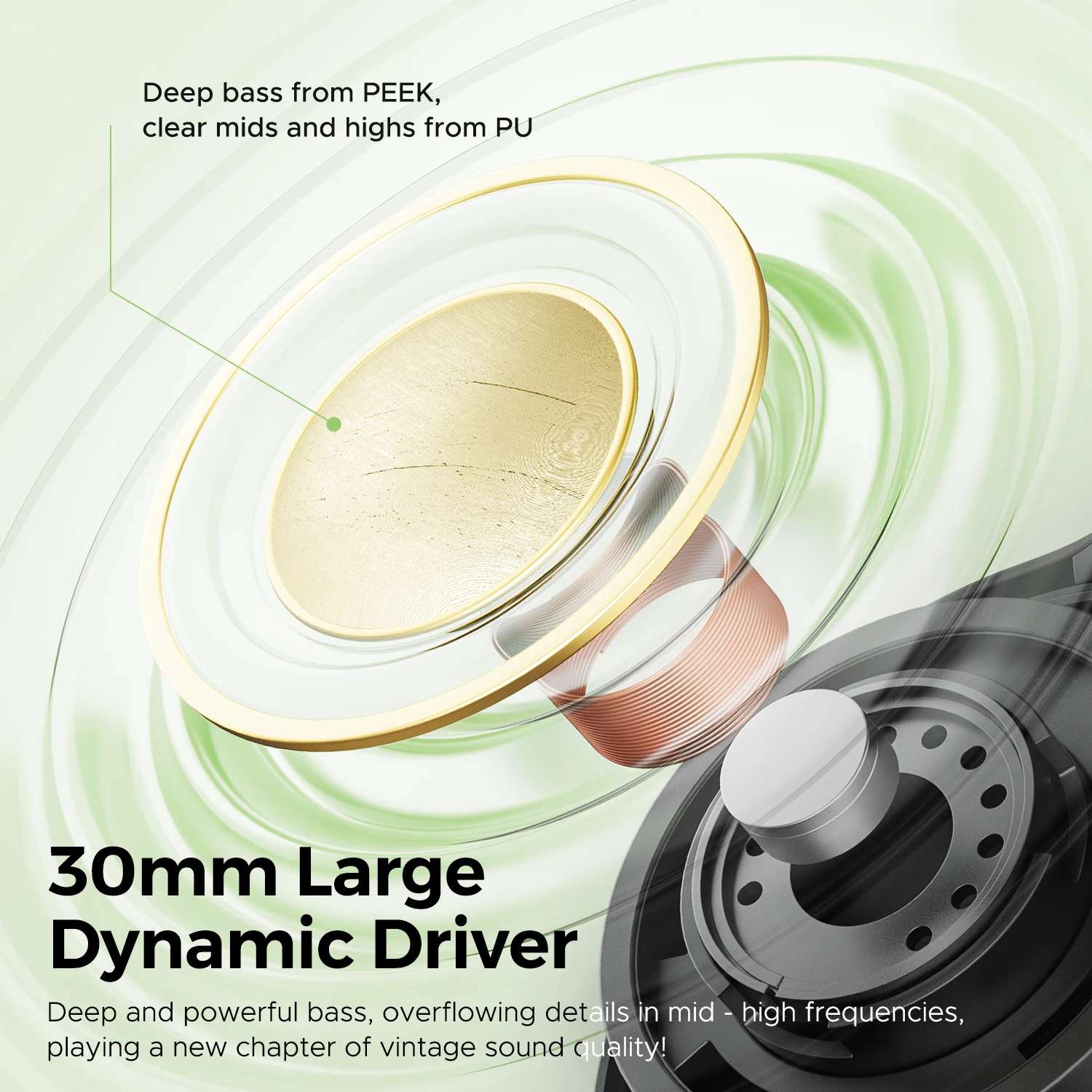 1. [Unidad de bobina móvil grande de 30 mm]La unidad de bobina móvil grande de 30 mm generalmente ofrece un rendimiento de baja frecuencia profundo y potente, mejorando la calidad del sonido con una experiencia más dinámica e impactante.Esta unidad proporciona una profundidad y capas superiores en el rango de bajas frecuencias, lo que la hace ideal para usuarios que prefieren efectos de graves intensos.Además, los detalles de frecuencia media y alta son ricos y ofrecen mayor claridad y detalle.