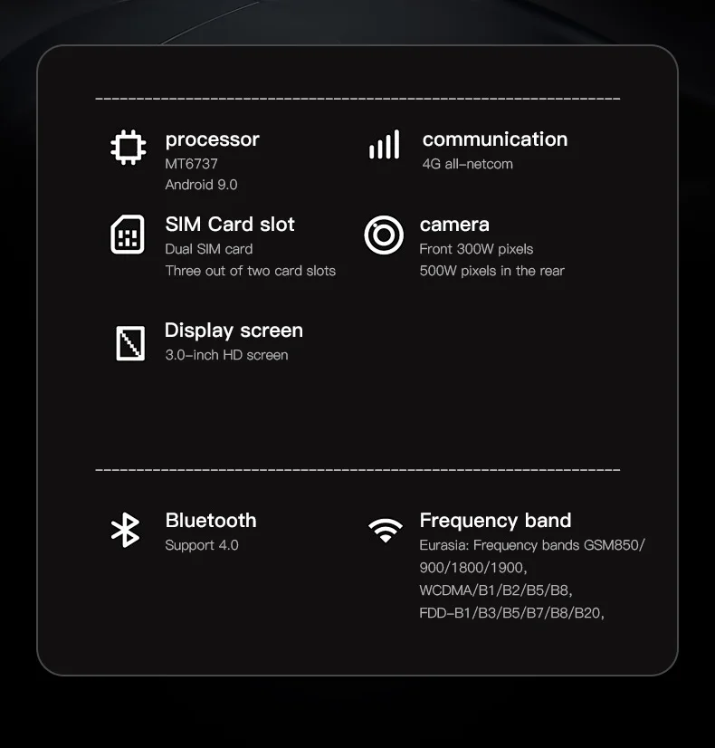 1. MT6737 Android 9,0 Mini 3,0 pulgadas 1950mAh 4G Netcom Smartphone;